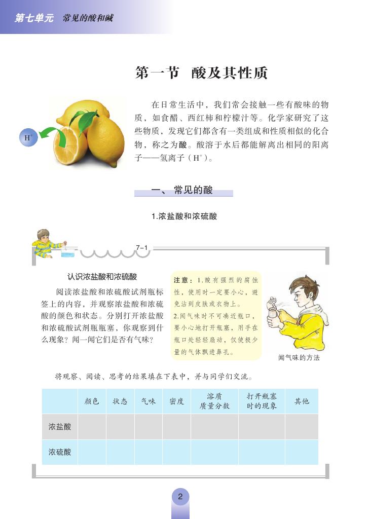 2012年新鲁教版化学九年级下册7.1酸及其性质》电子课本