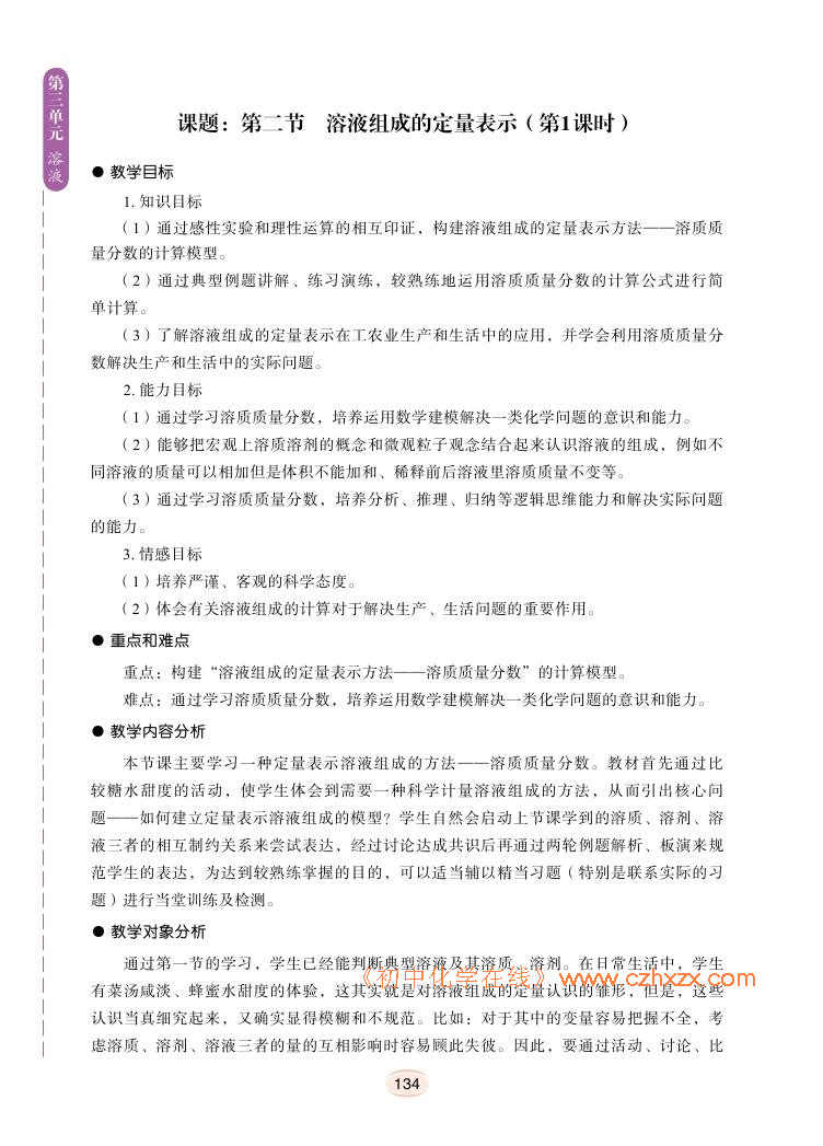 2012年新鲁教版化学九年级上册学习指导书《第三单元溶液教学案例》电子课本2