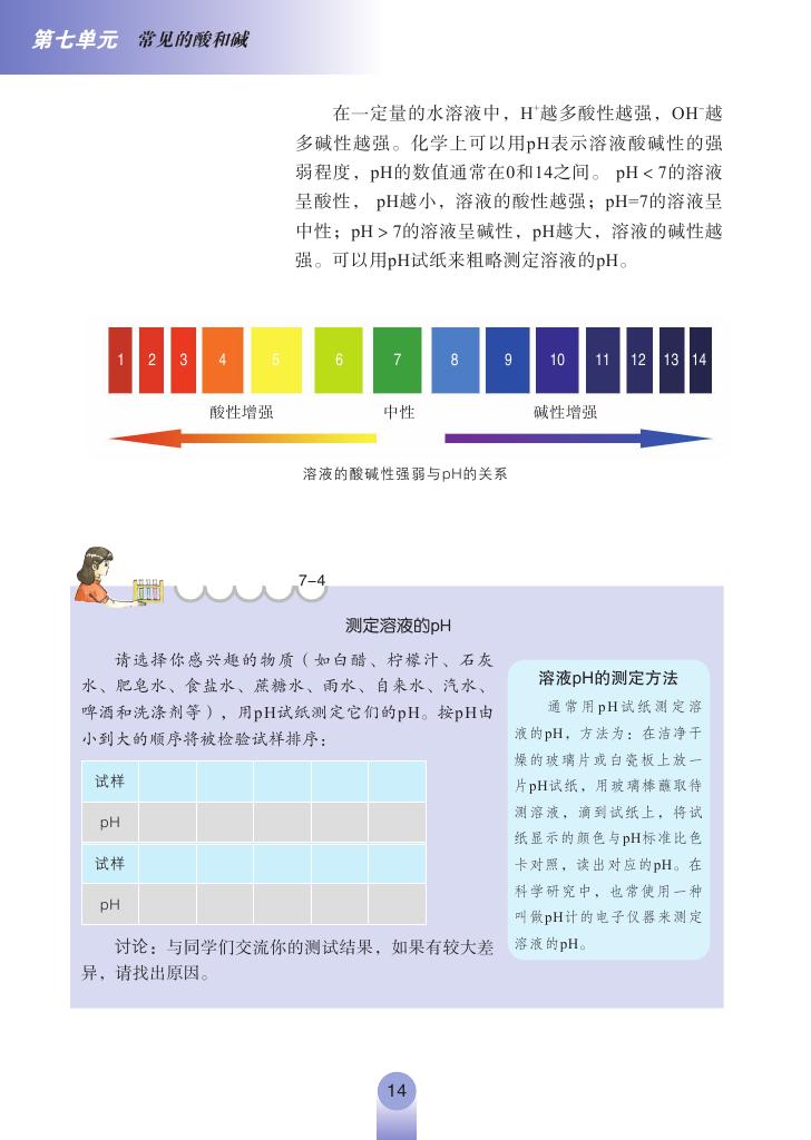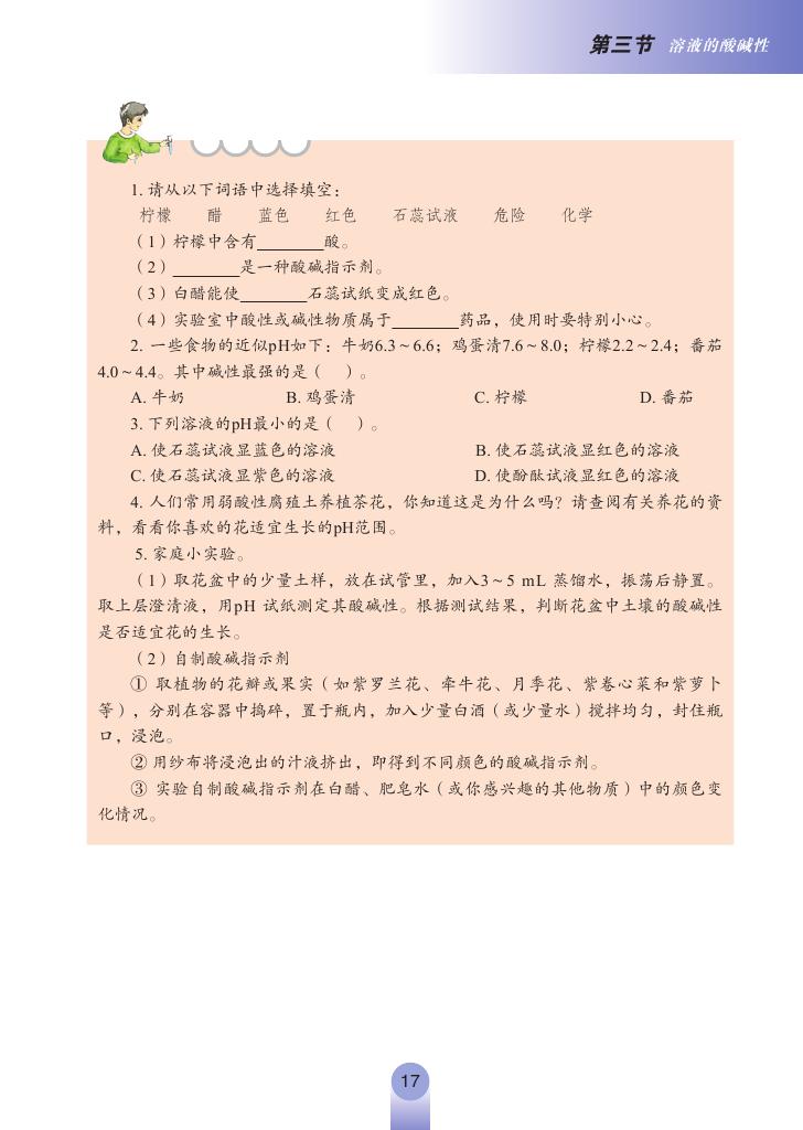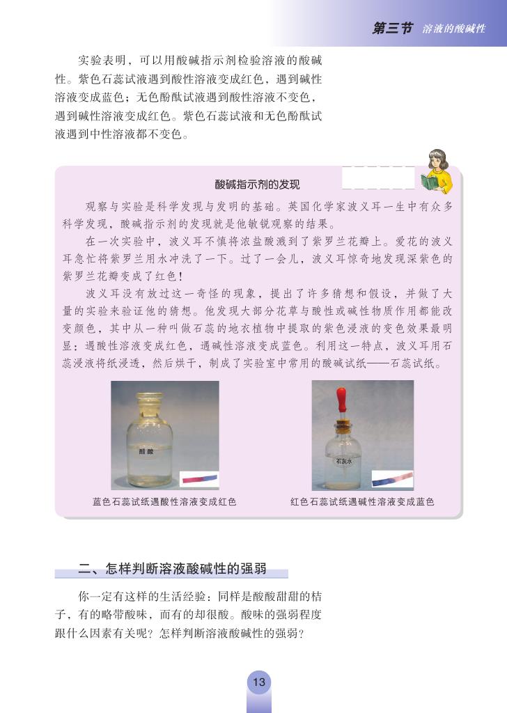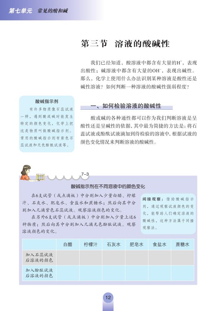 2012年新鲁教版化学九年级下册《7.3溶液的酸碱性》电子课本