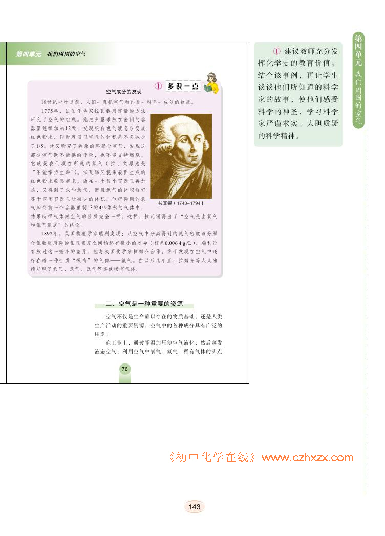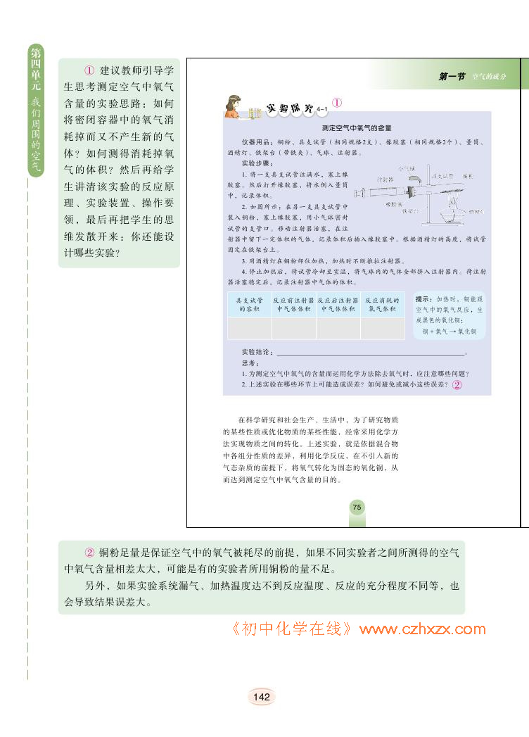 2012年新鲁教版化学九年级上册学习指导书《4.1空气的成分》电子课本2