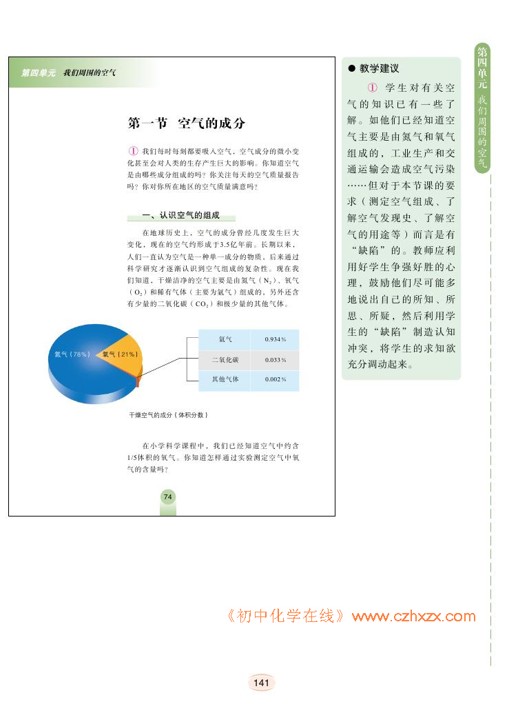 2012年新鲁教版化学九年级上册学习指导书《4.1空气的成分》电子课本1