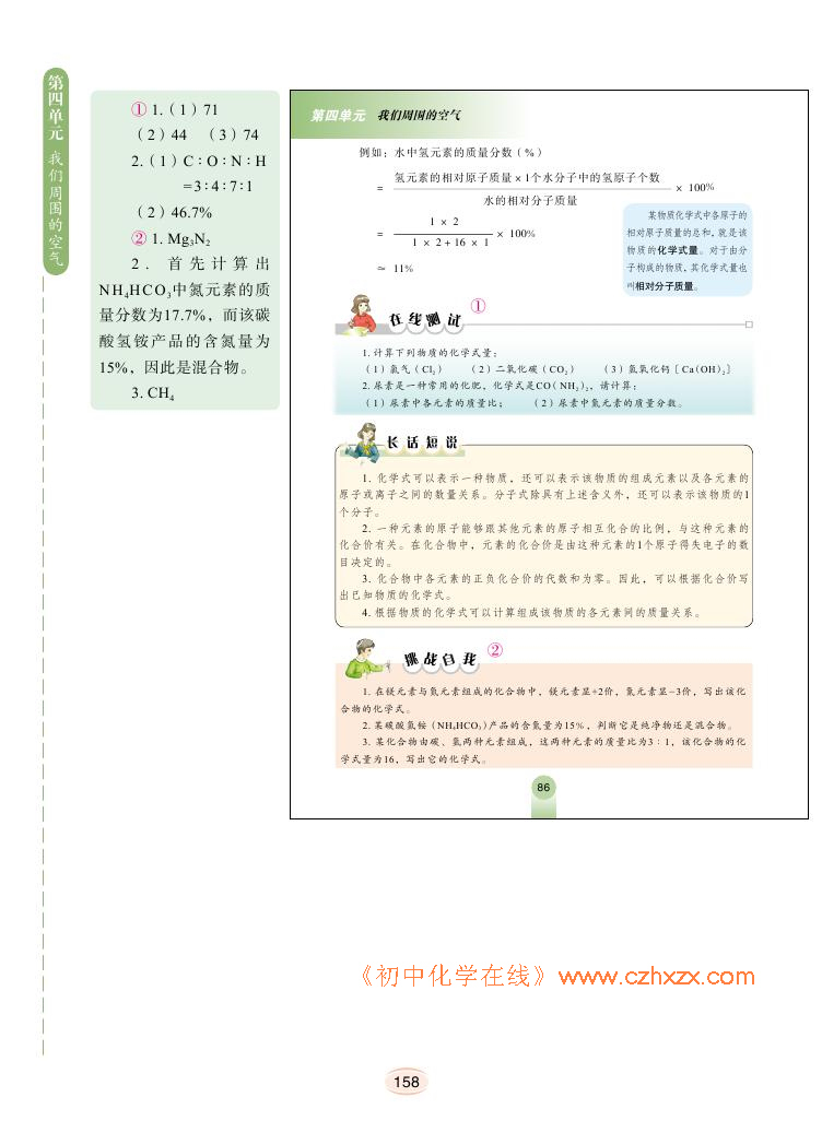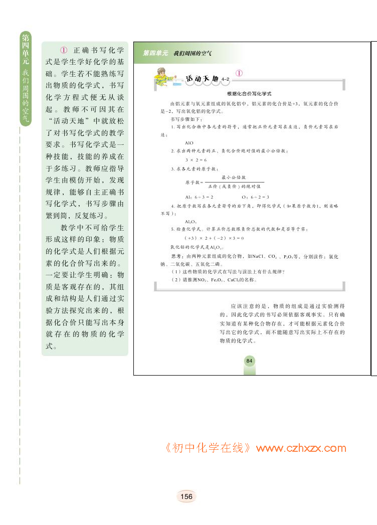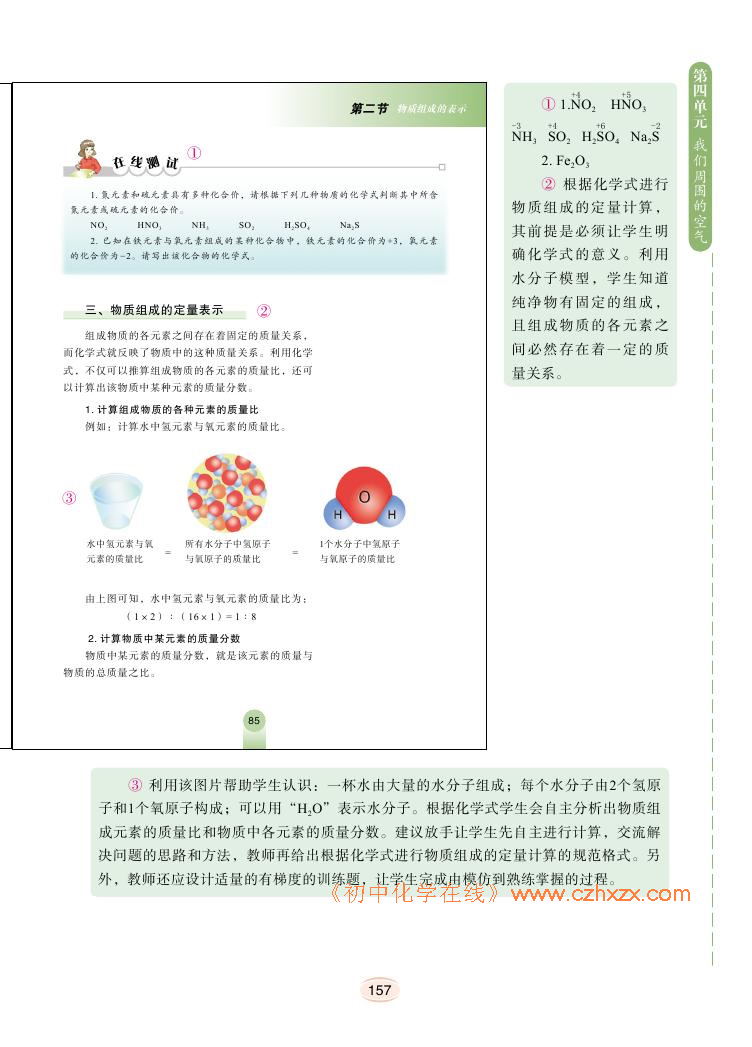 2012年新鲁教版化学九年级上册学习指导书《4.2物质组成的表示》电子课本