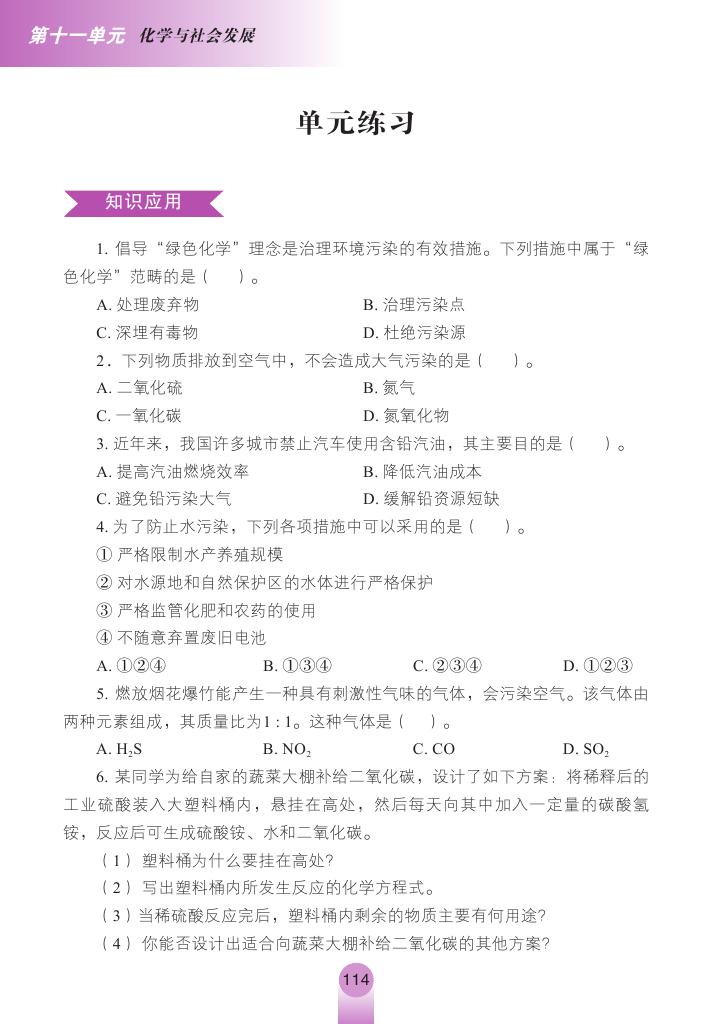 2012年新鲁教版化学九年级下册《第十一单元 单元练习》电子课本