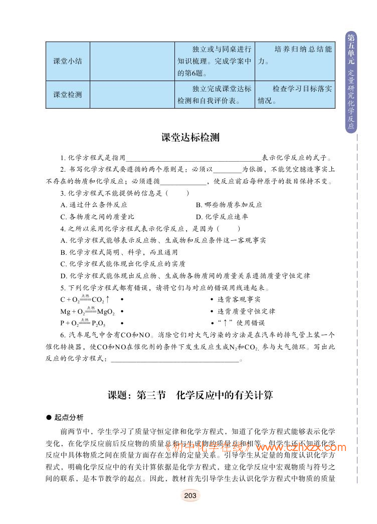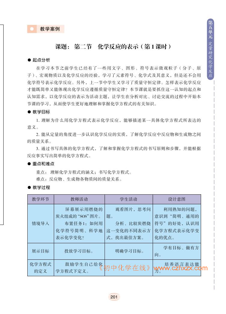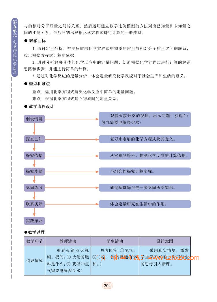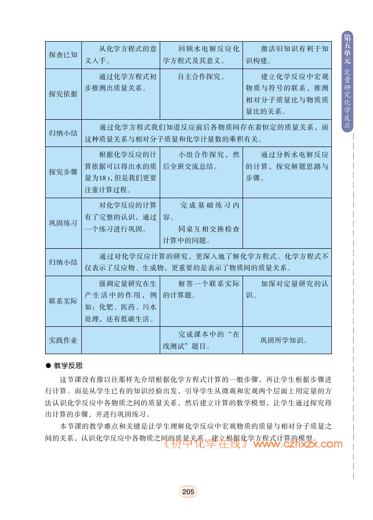 2012年新鲁教版化学九年级上册学习指导书《第五单元定量研究化学反应教学案例》电子课本