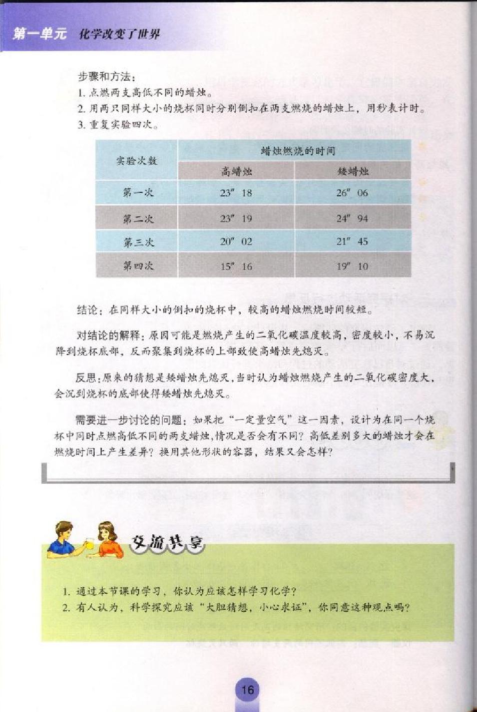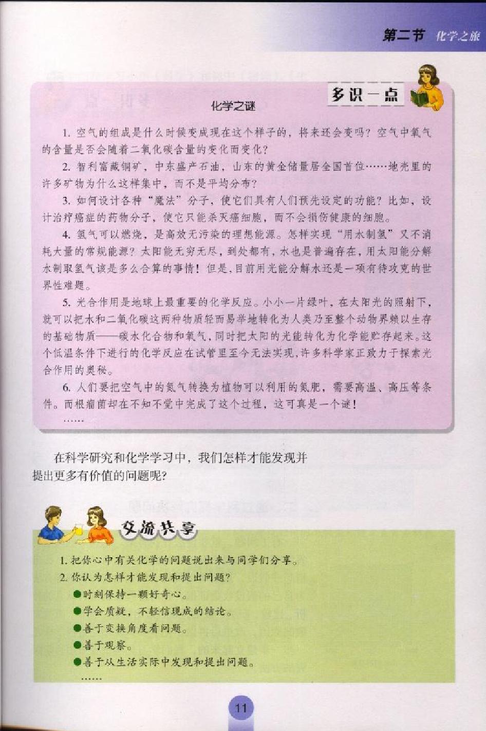 鲁教版初中化学《第一单元第二节 化学之旅》电子课本