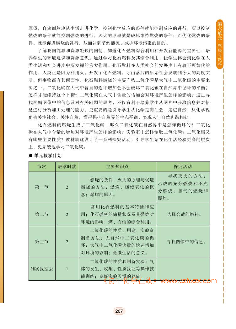2012年新鲁教版化学九年级上册学习指导书《第六单元燃烧与燃料》电子课本