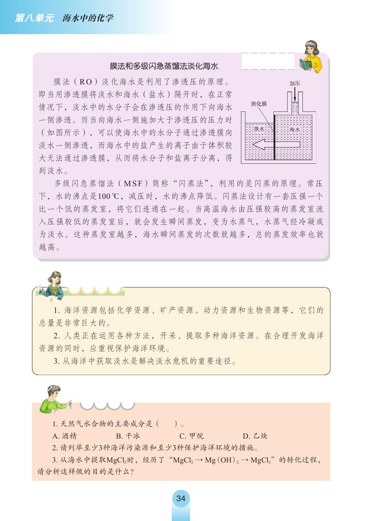 2012年新鲁教版化学九年级下册《第八单元海水中的化学》电子课本