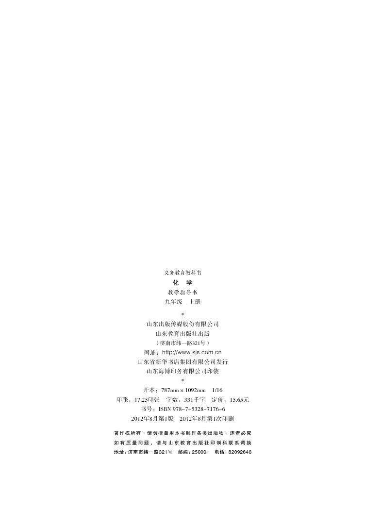 2012年新鲁教版化学九年级上册学习指导书《封面》电子课本
