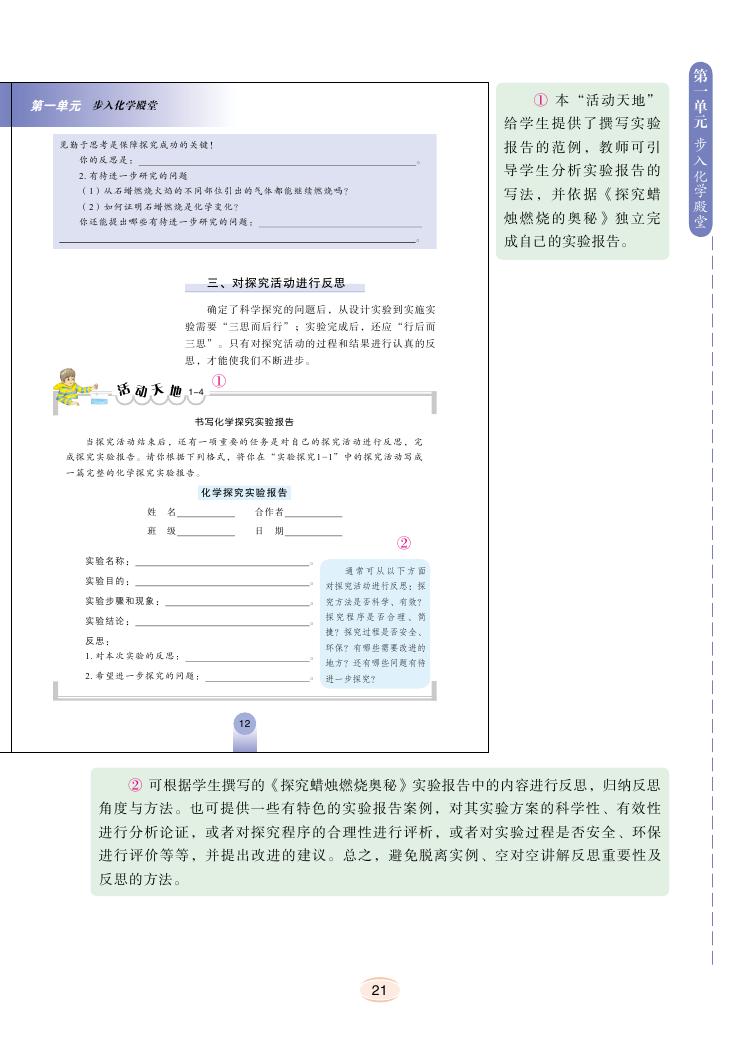 2012年新鲁教版化学九年级上册学习指导书《1.2体验化学探究》电子课本2