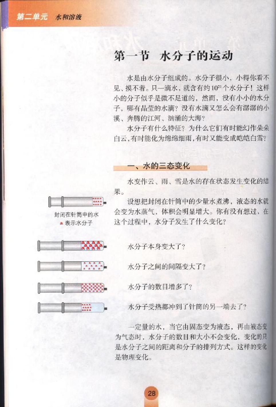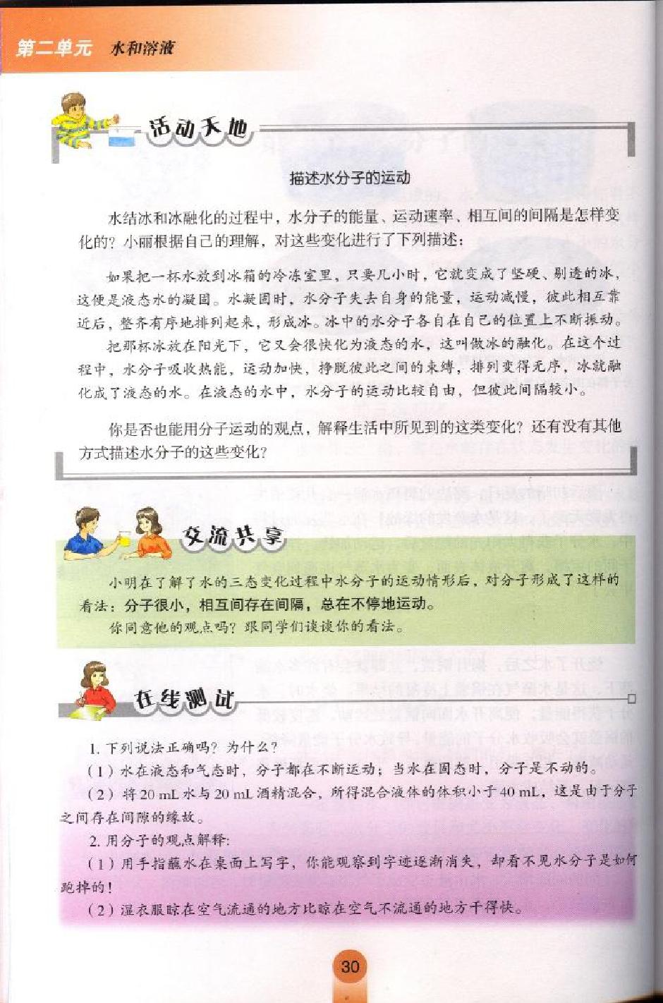 鲁教版初中化学《第二单元第一节 水分子的运动》电子课本