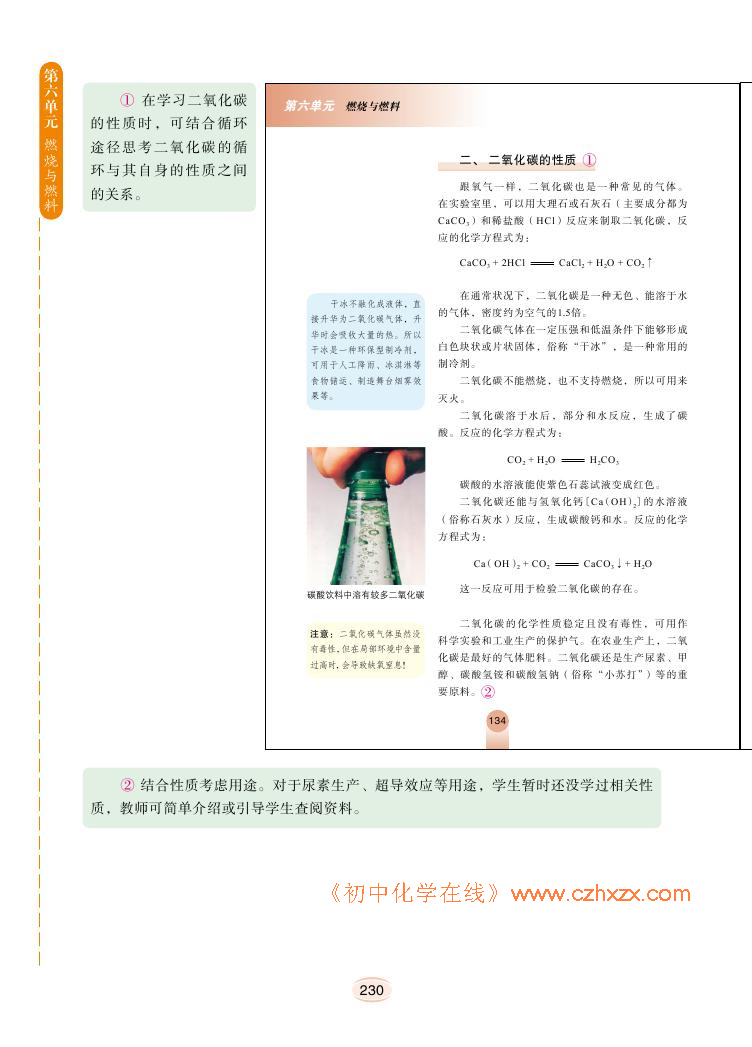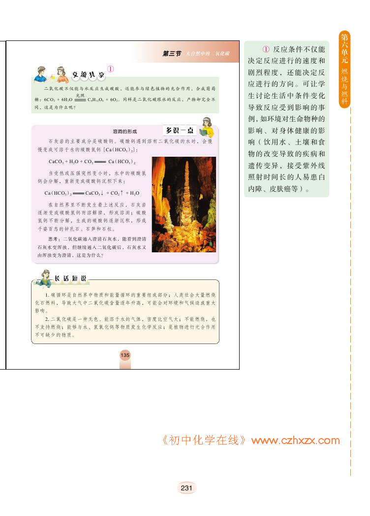 2012年新鲁教版化学九年级上册学习指导书《6.3大自然中的二氧化碳》电子课本