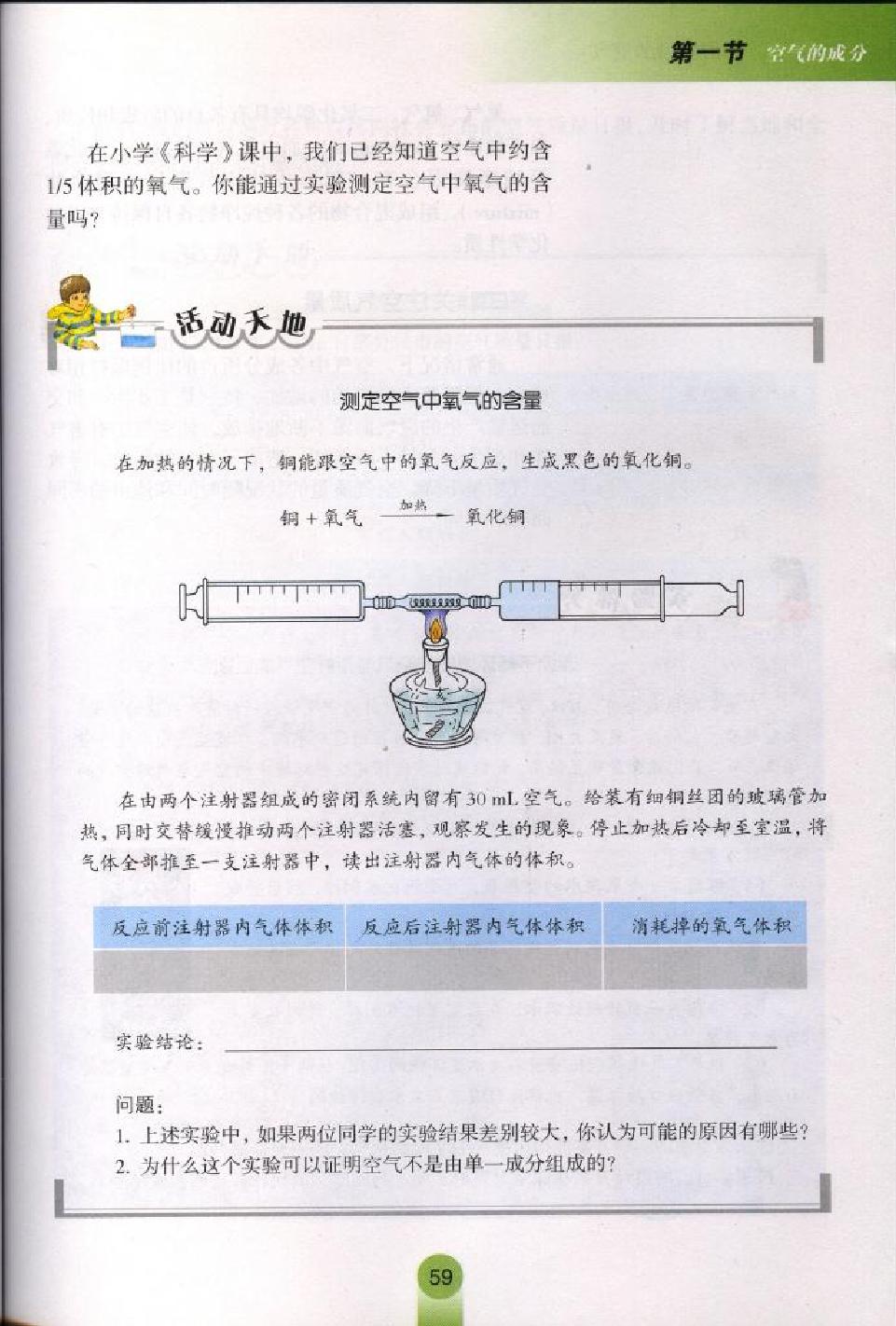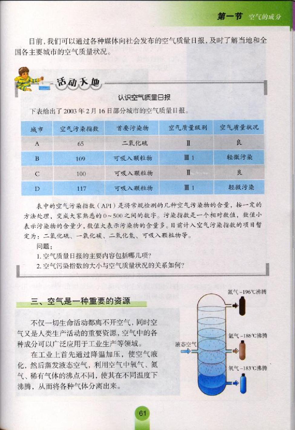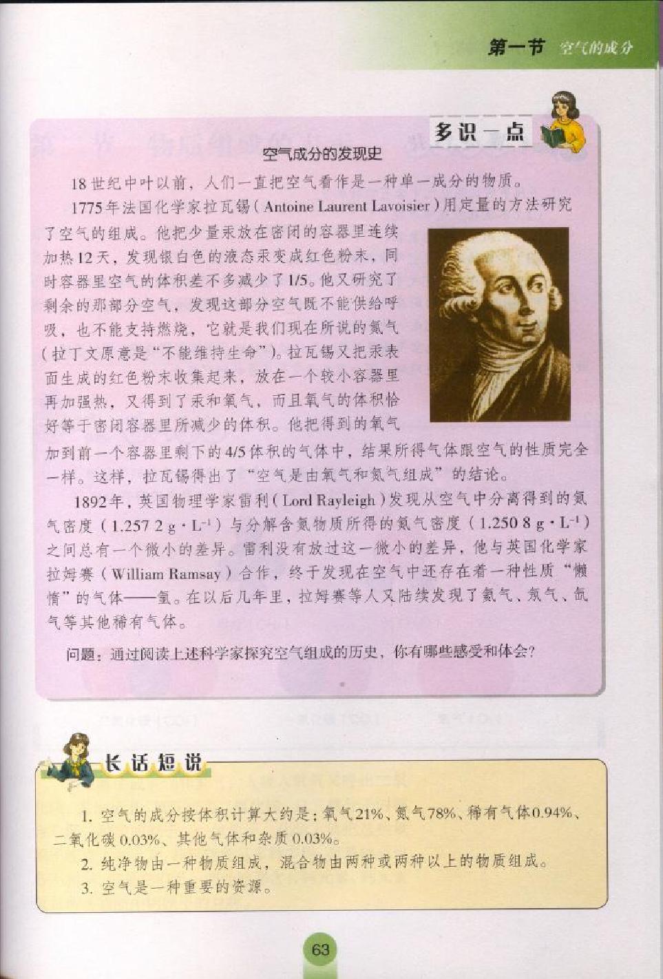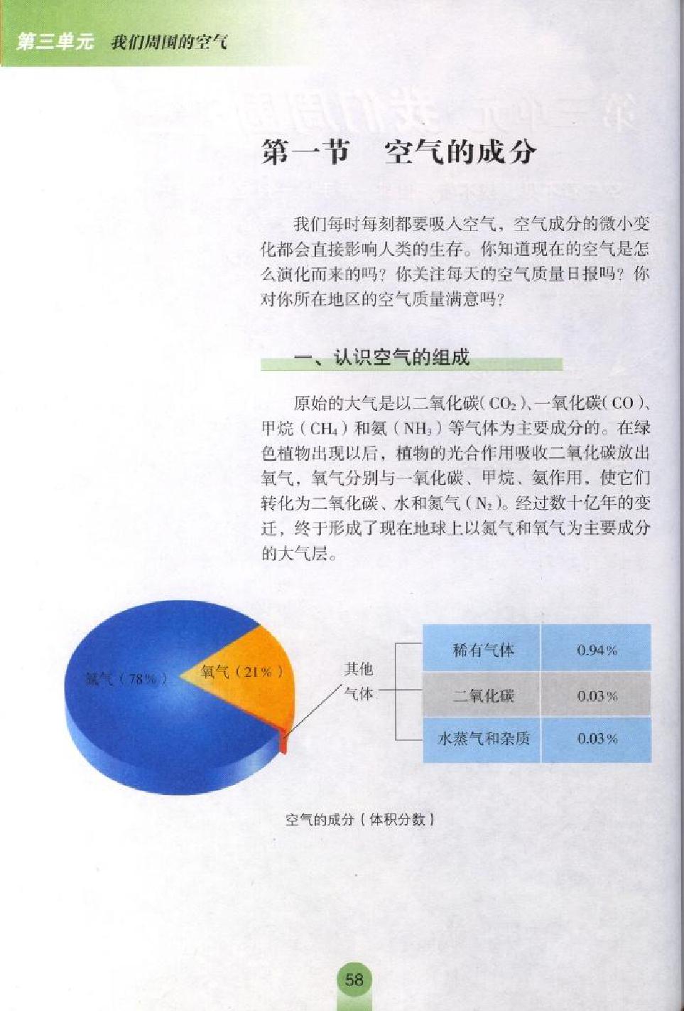 鲁教版初中化学《第三单元第一节 空气的成分》电子课本