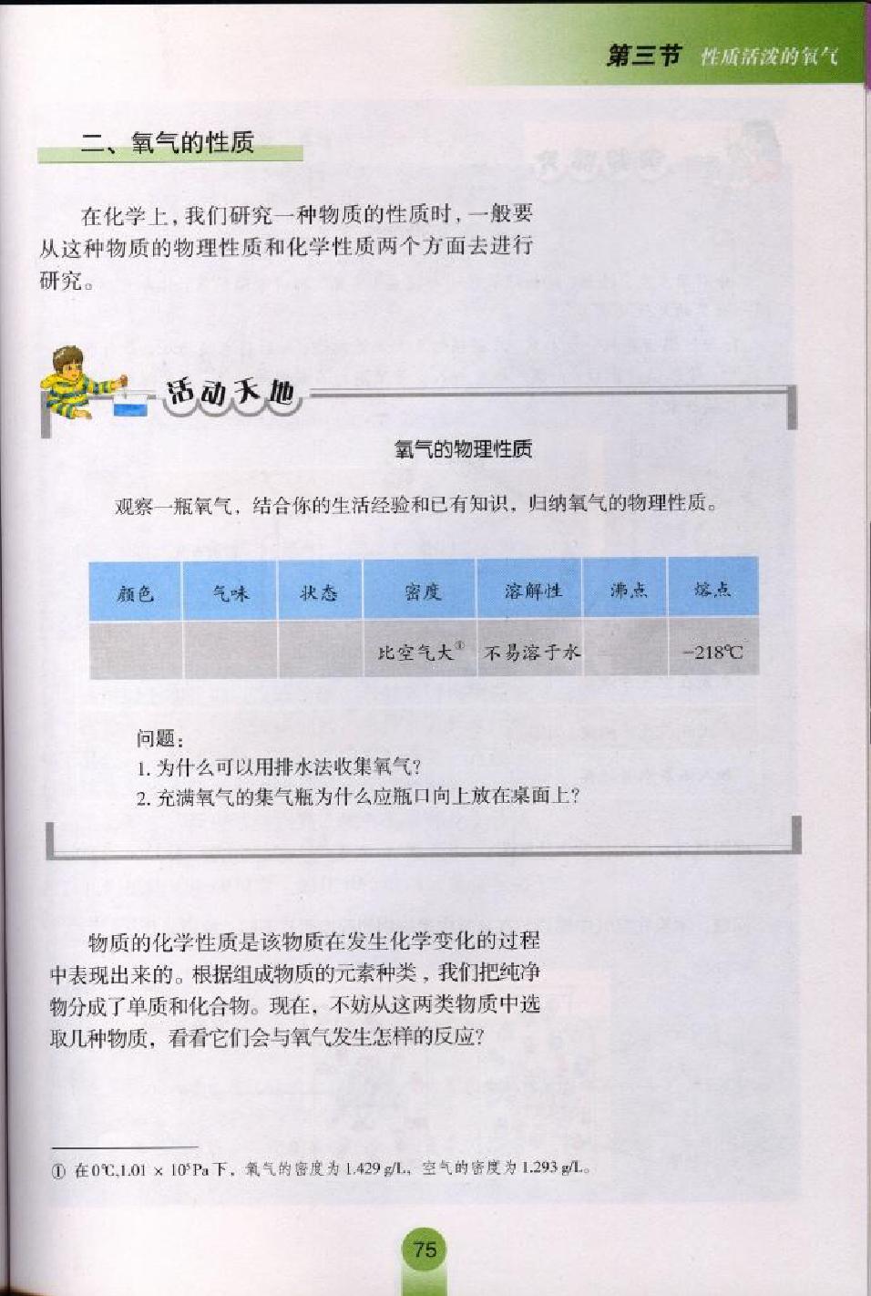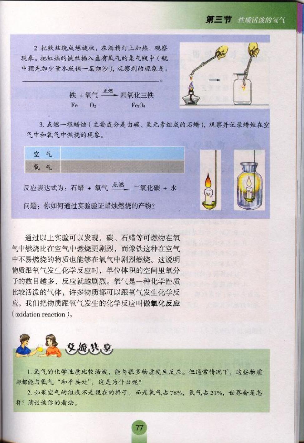 鲁教版初中化学《第三单元第三节 性质活泼的氧气》电子课本