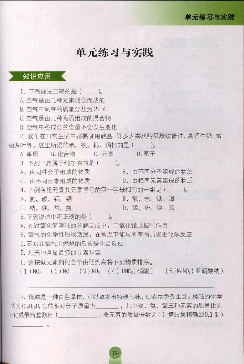 鲁教版初中化学《第三单元单元练习与实践》电子课本