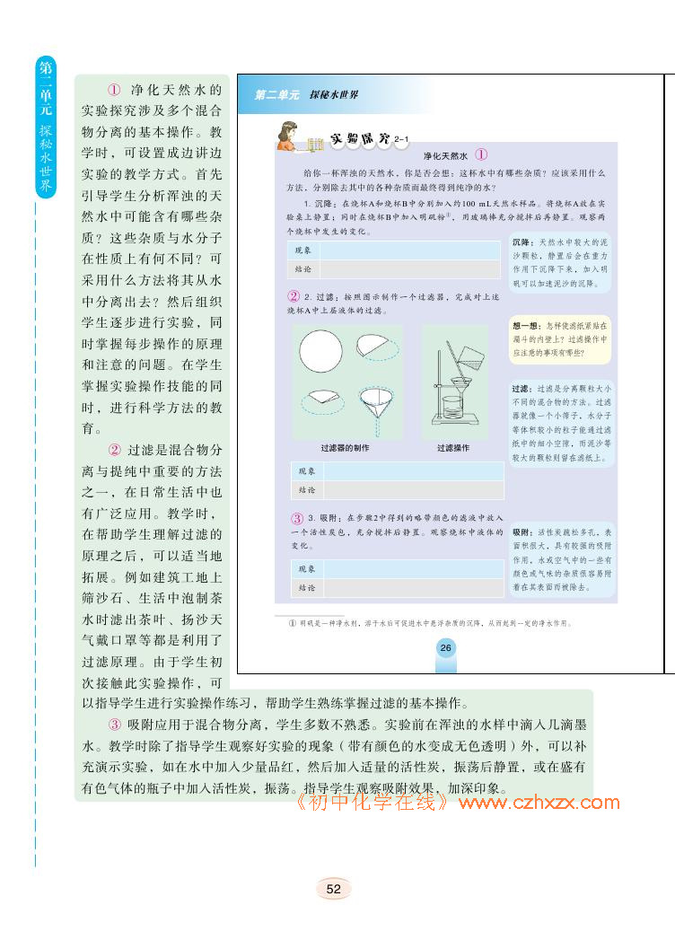 2012年新鲁教版化学九年级上册学习指导书《第二单元探秘水世界》电子课本