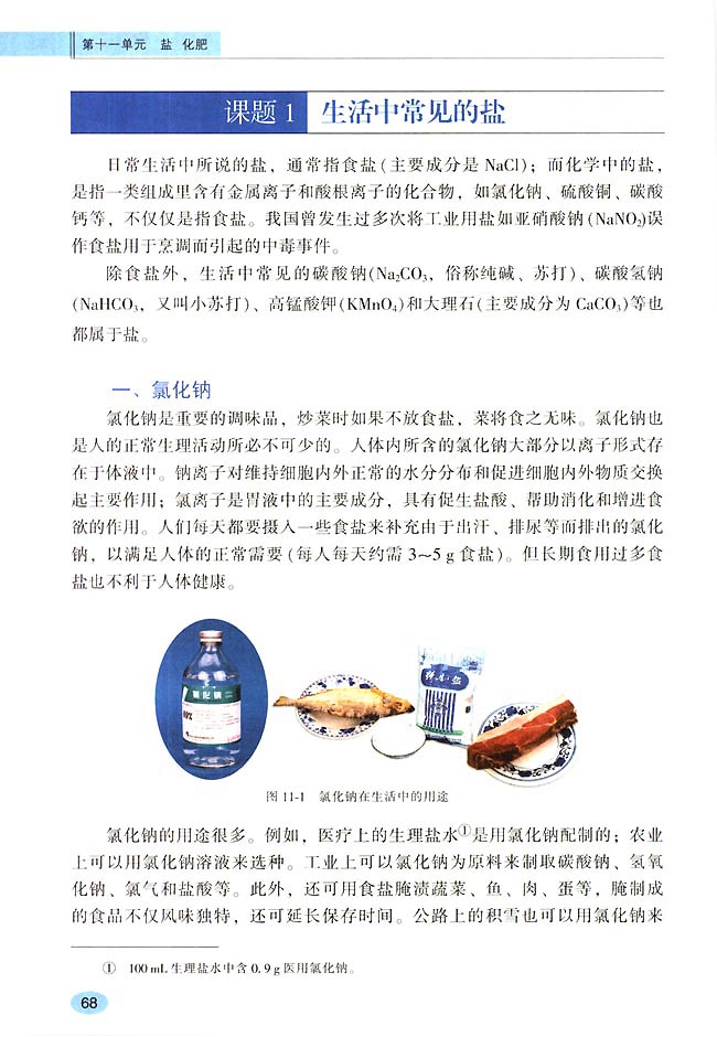 第十一单元课题1 生活中常见的盐