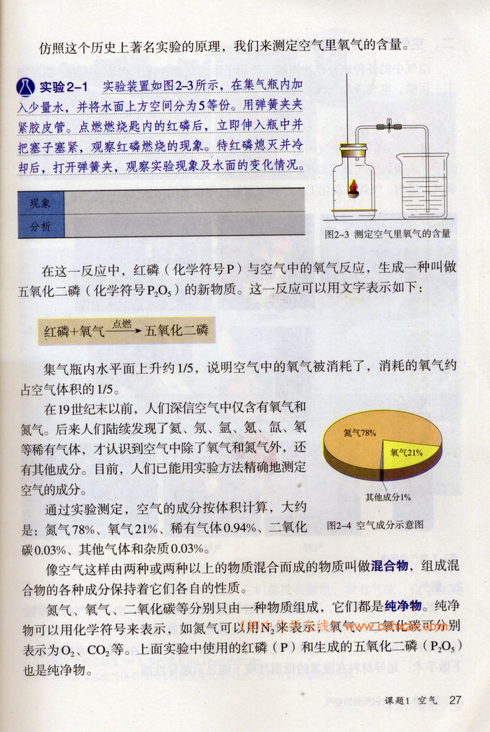 2012年新人教版化学九年级上册《第二单元课题1 空气》电子课本