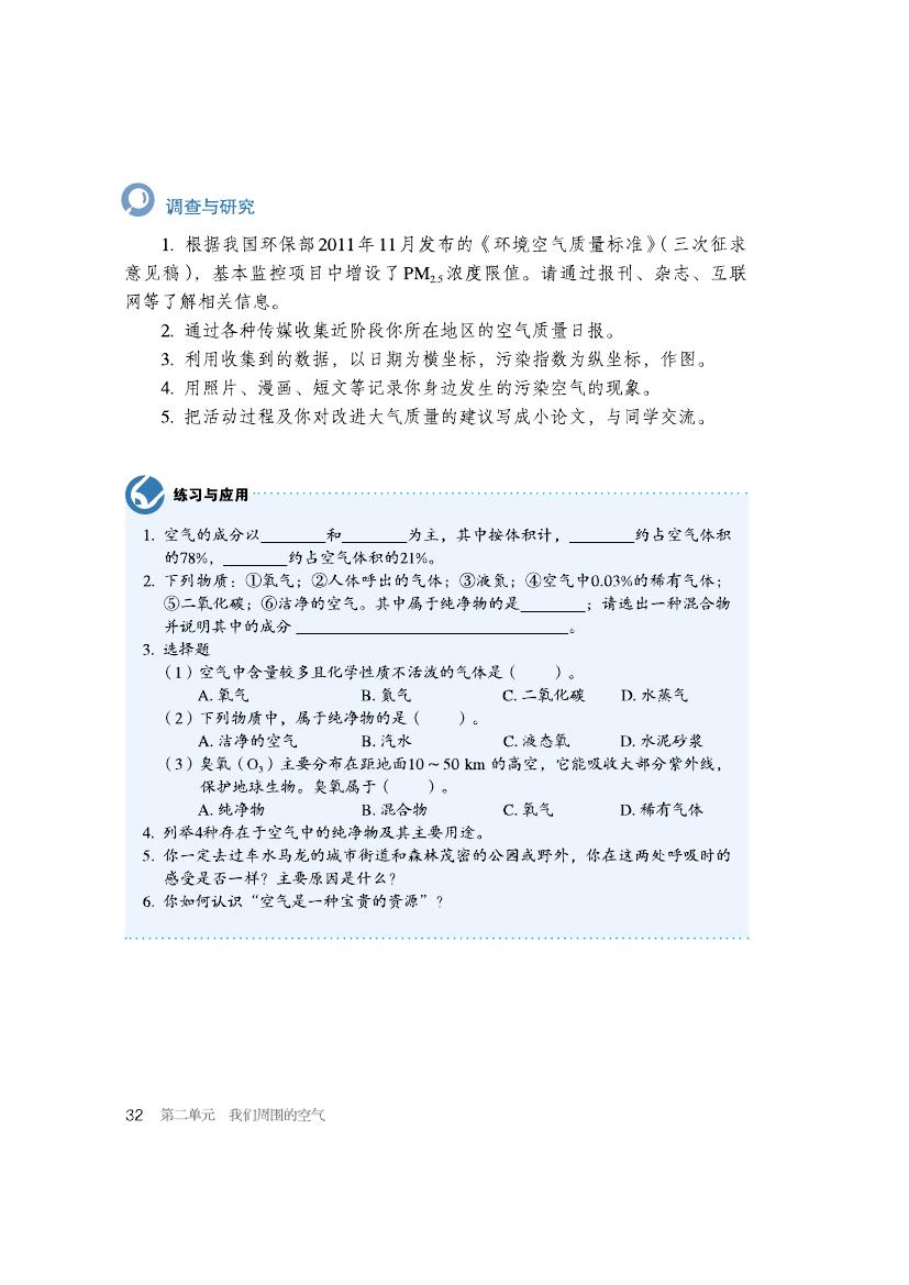 2012年新人教版化学九年级上册《第二单元 我们周围的空气》电子课本