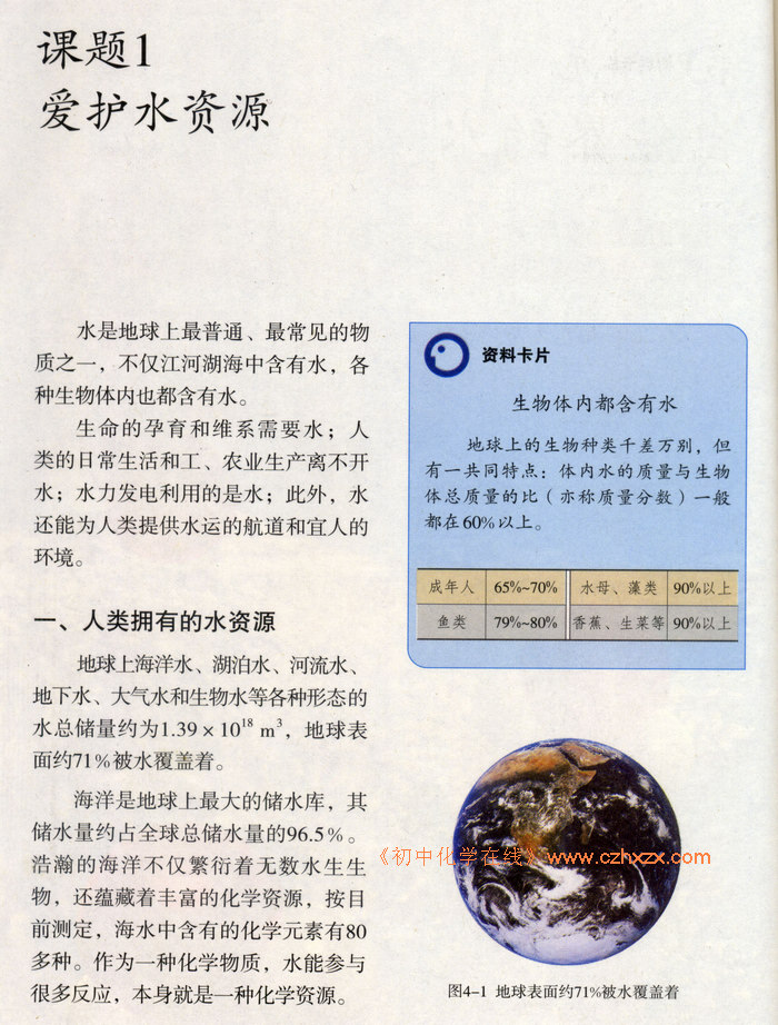 2012年新人教版化学九年级上册《第四单元课题1 爱护水资源》电子课本