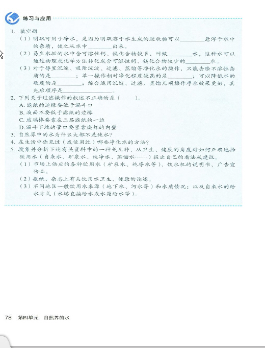 2012年新人教版化学九年级上册《第四单元课题2 水的净化》电子课本