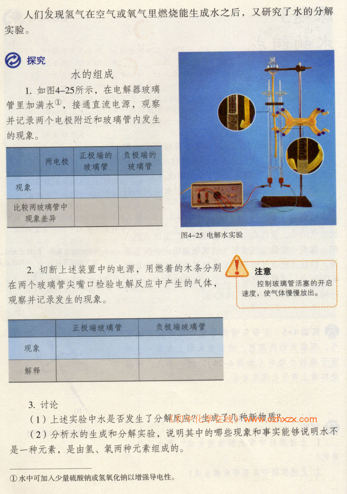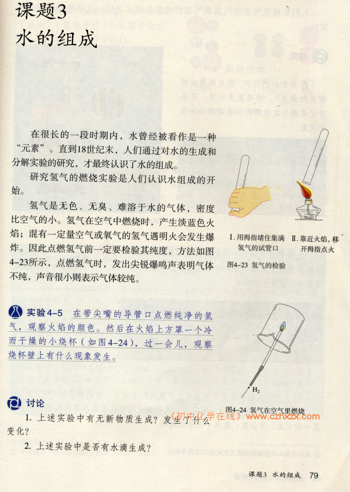 2012年新人教版化学九年级上册《第四单元课题3 水的组成》电子课本
