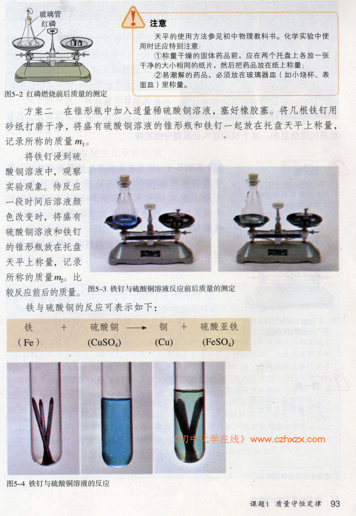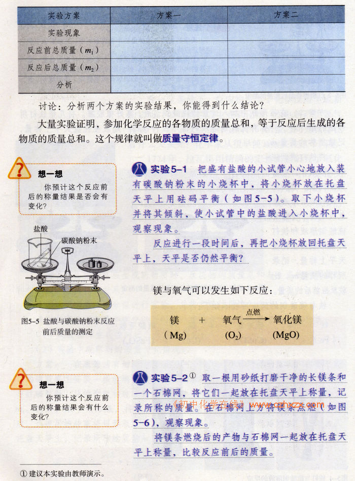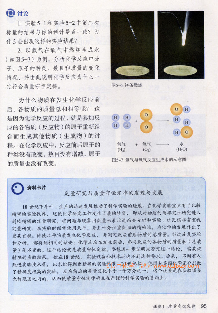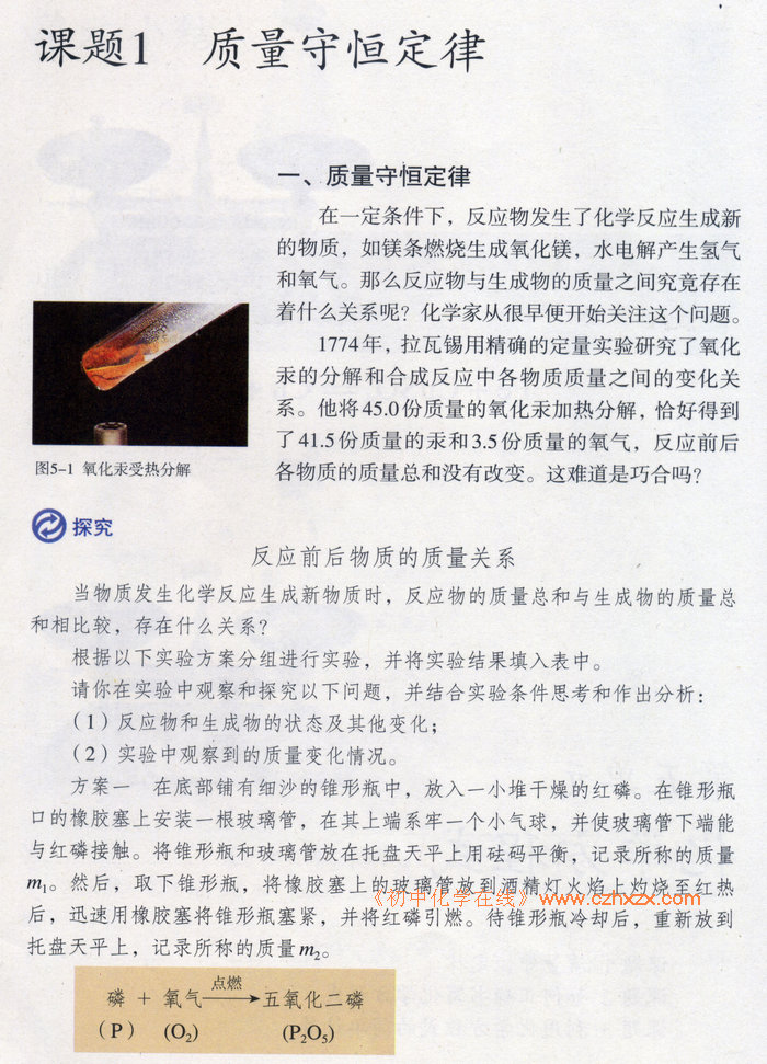 2012年新人教版化学九年级上册《第五单元课题1 质量守恒定律》电子课本