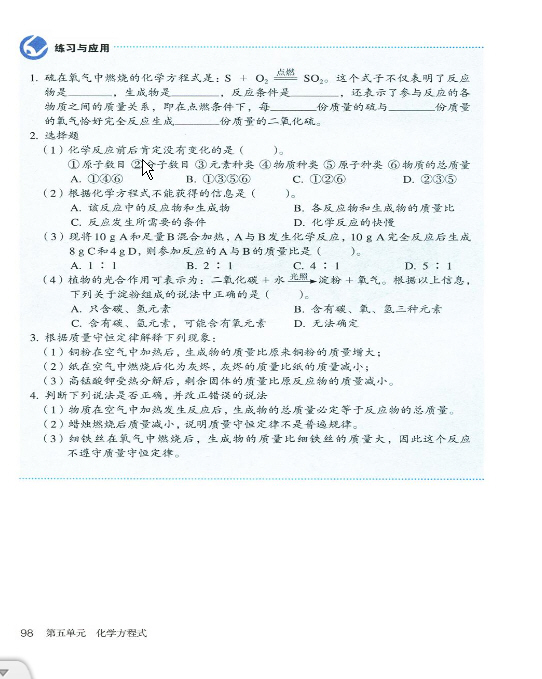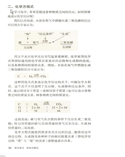 2012年新人教版化学九年级上册《第五单元 化学方程式》电子课本