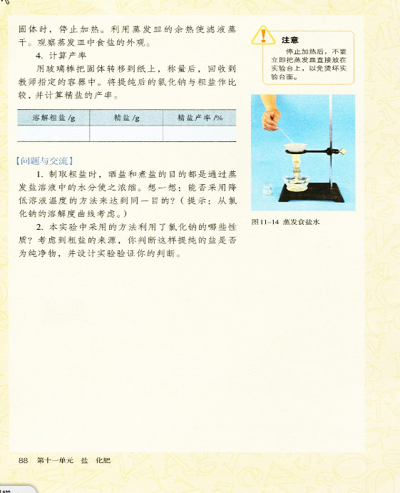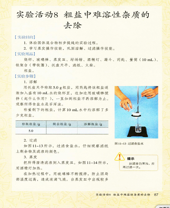 2012年新人教版化学九年级下册《实验活动8 粗盐中难溶性杂质的去除》电子课本