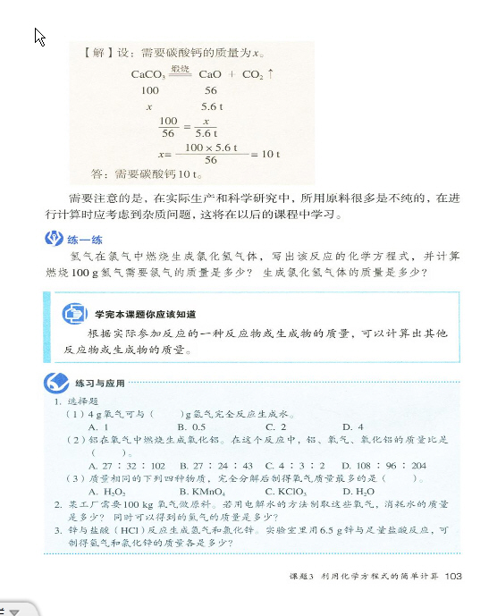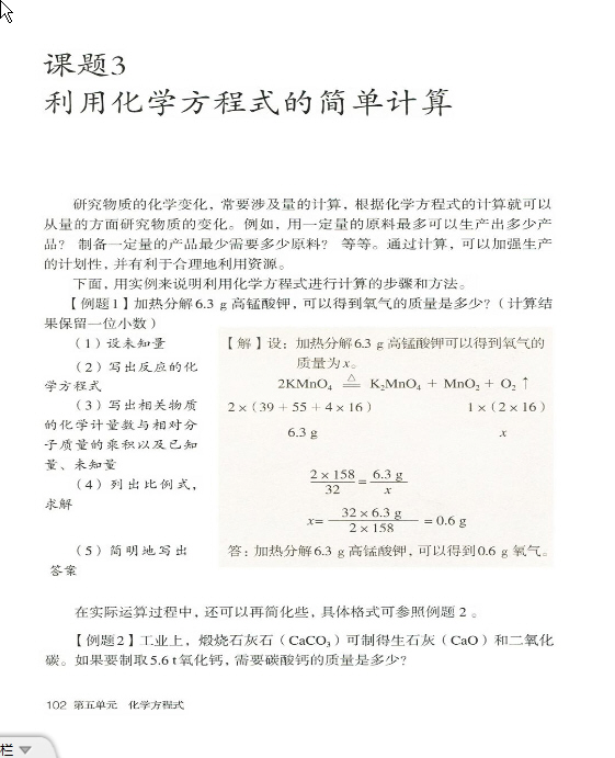 2012年新人教版化学九年级上册《第五单元课题3 利用化学方程式的简单计算》电子课本