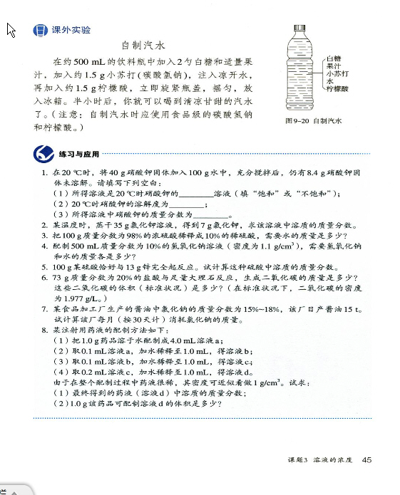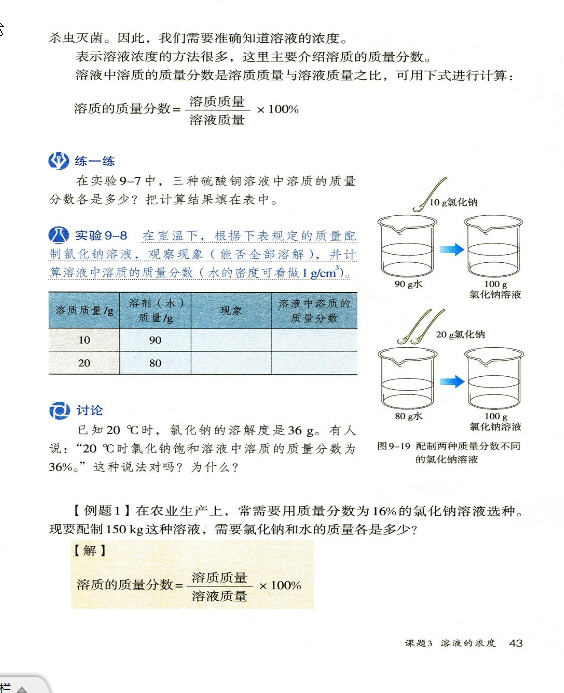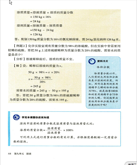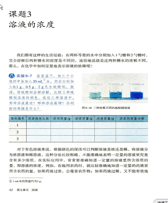2012年新人教版化学九年级下册《第九单元 课题3溶液的浓度》电子课本