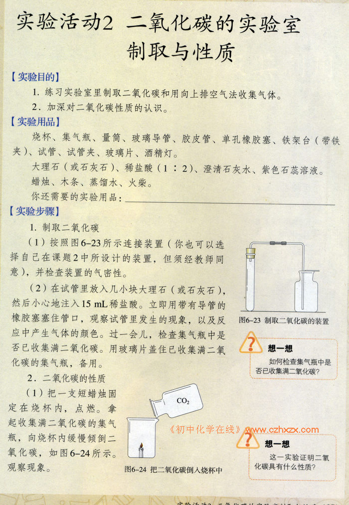 2012年新人教版化学九年级上册《实验活动2 二氧化碳的实验室制取与性质》电子课本