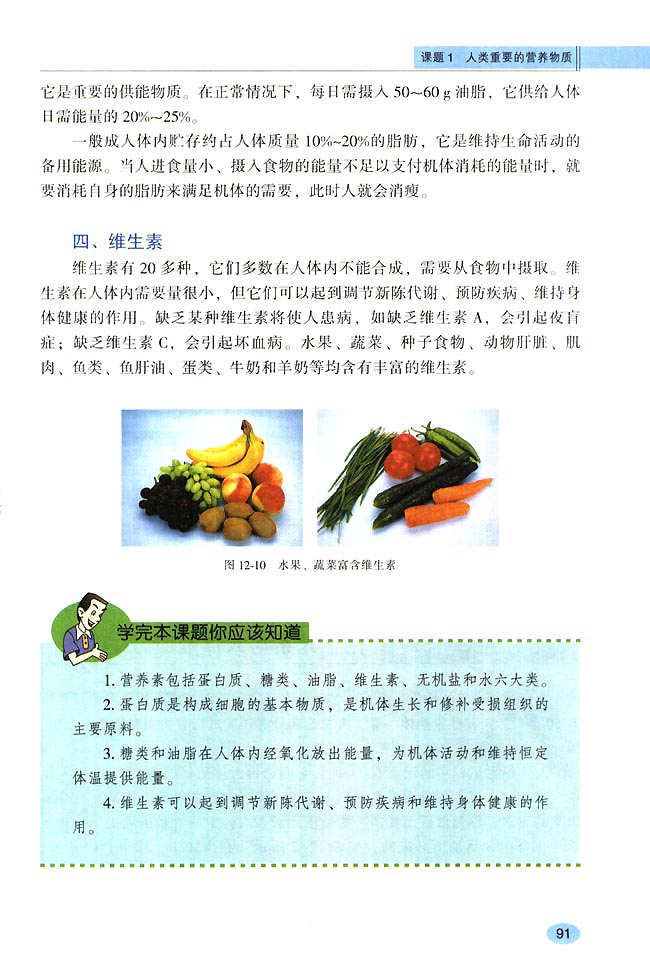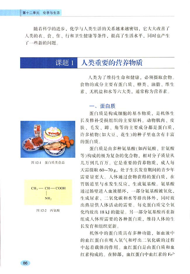 第十二单元课题1 人类重要的营养物质