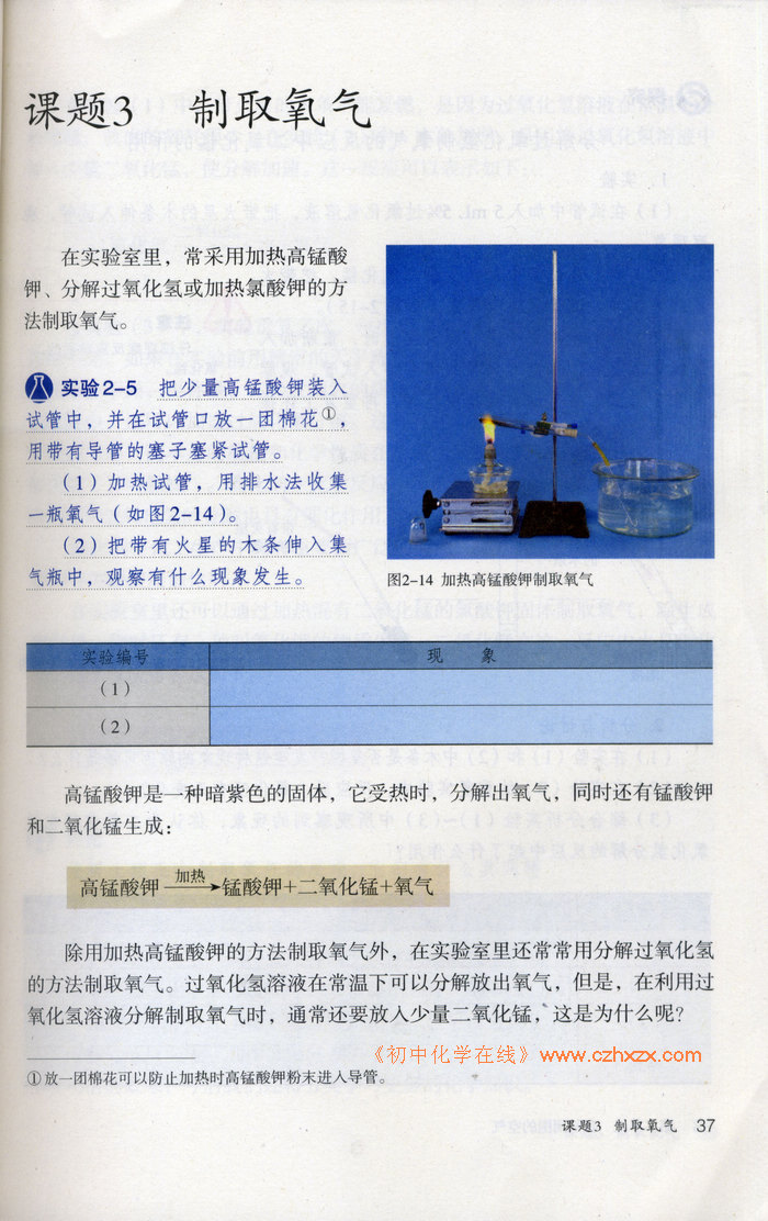 2012年新人教版化学九年级上册《第二单元课题3 制取氧气》电子课本