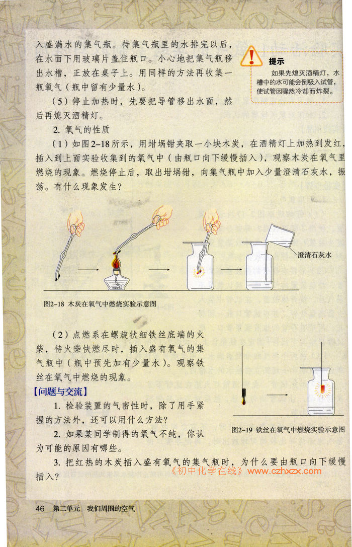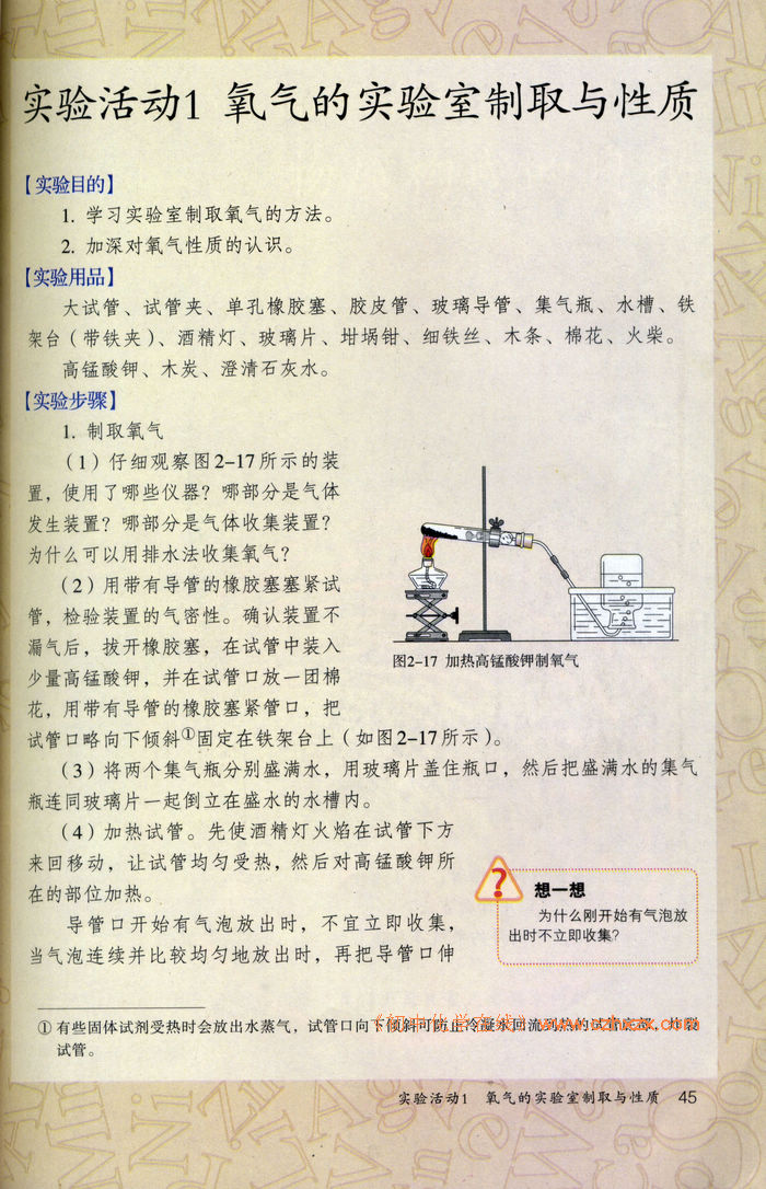 2012年新人教版化学九年级上册《实验活动1 氧气的实验室制取与性质》电子课本