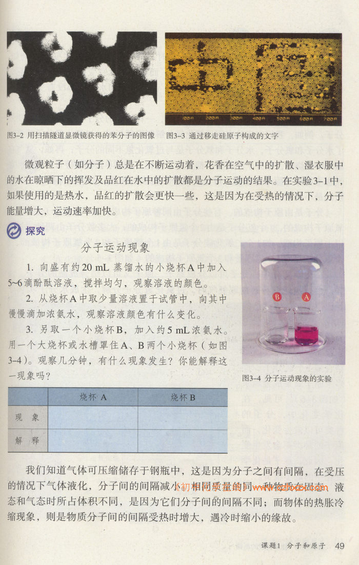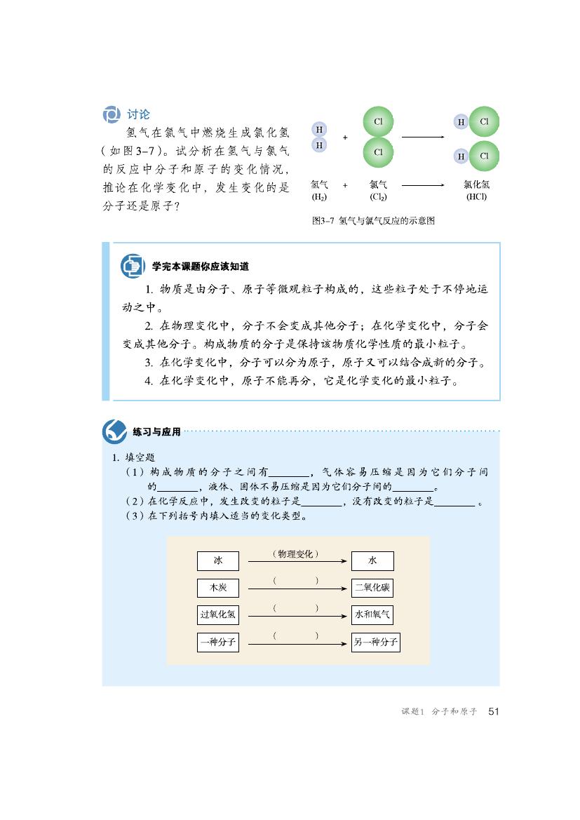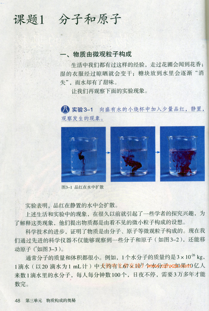 2012年新人教版化学九年级上册《第三单元课题1 分子和原子》电子课本