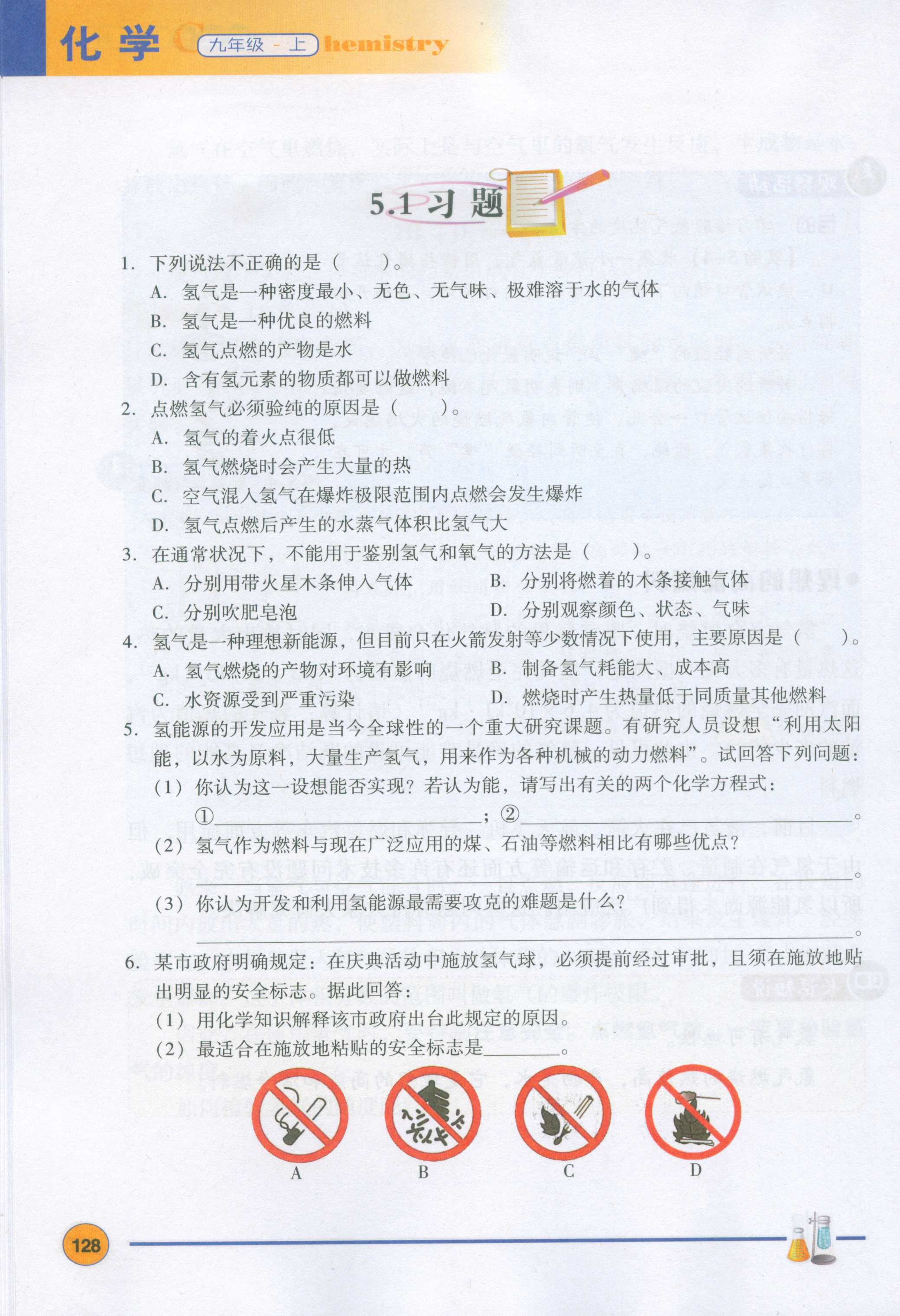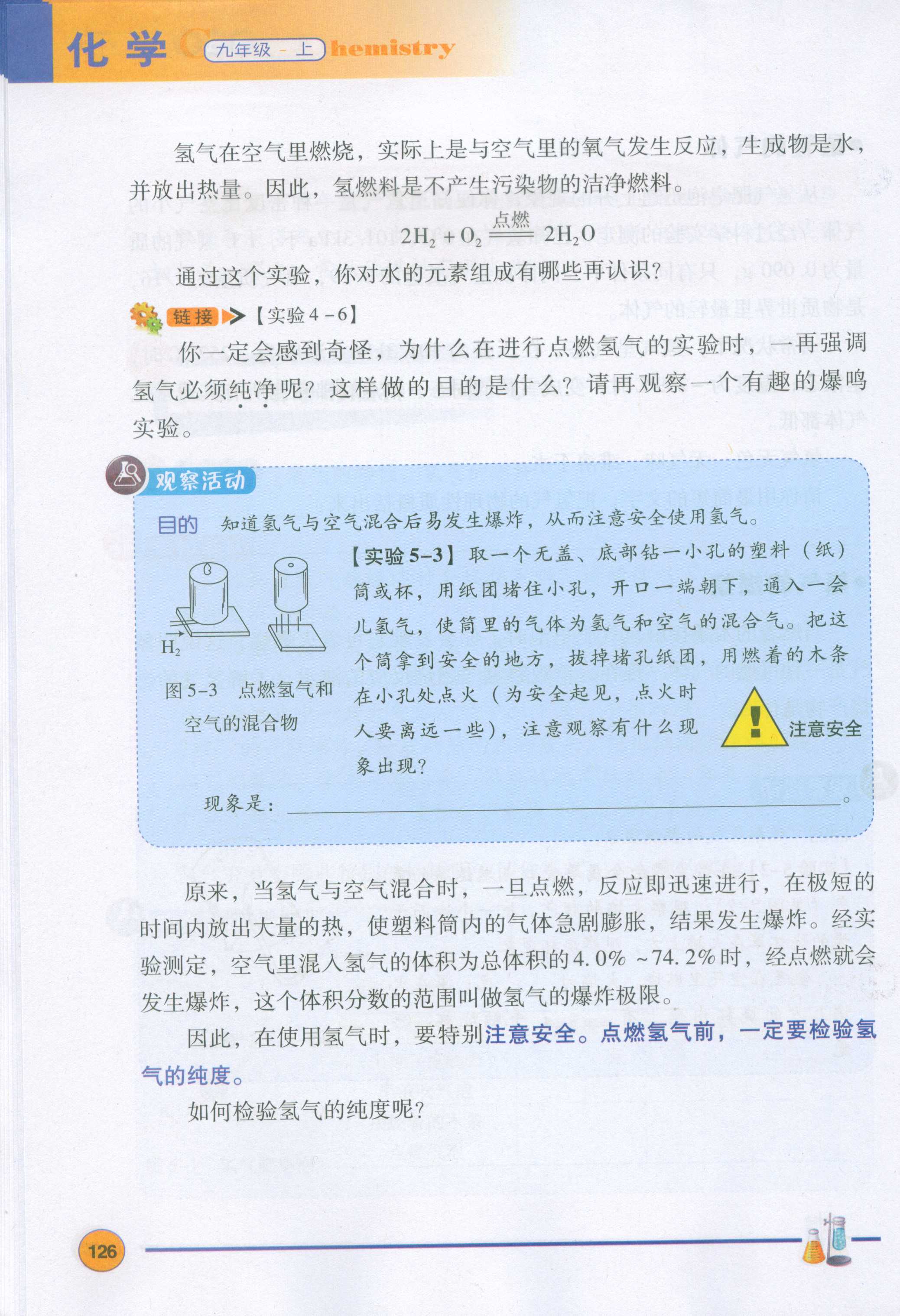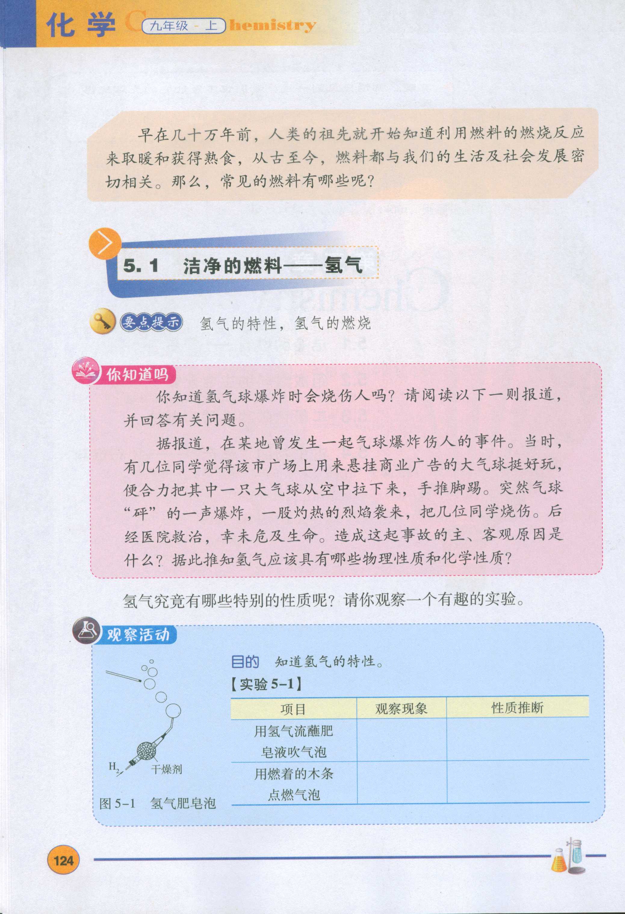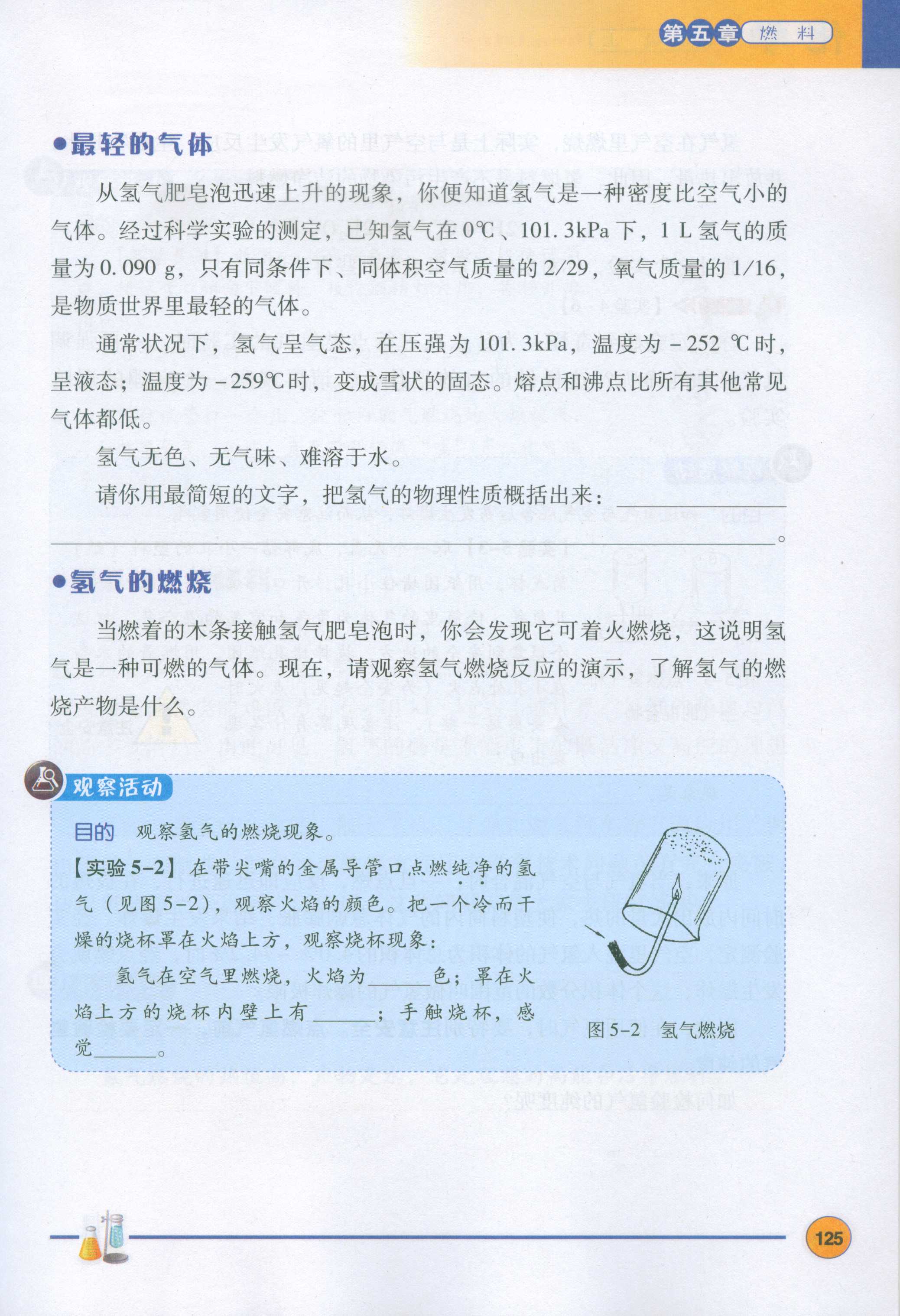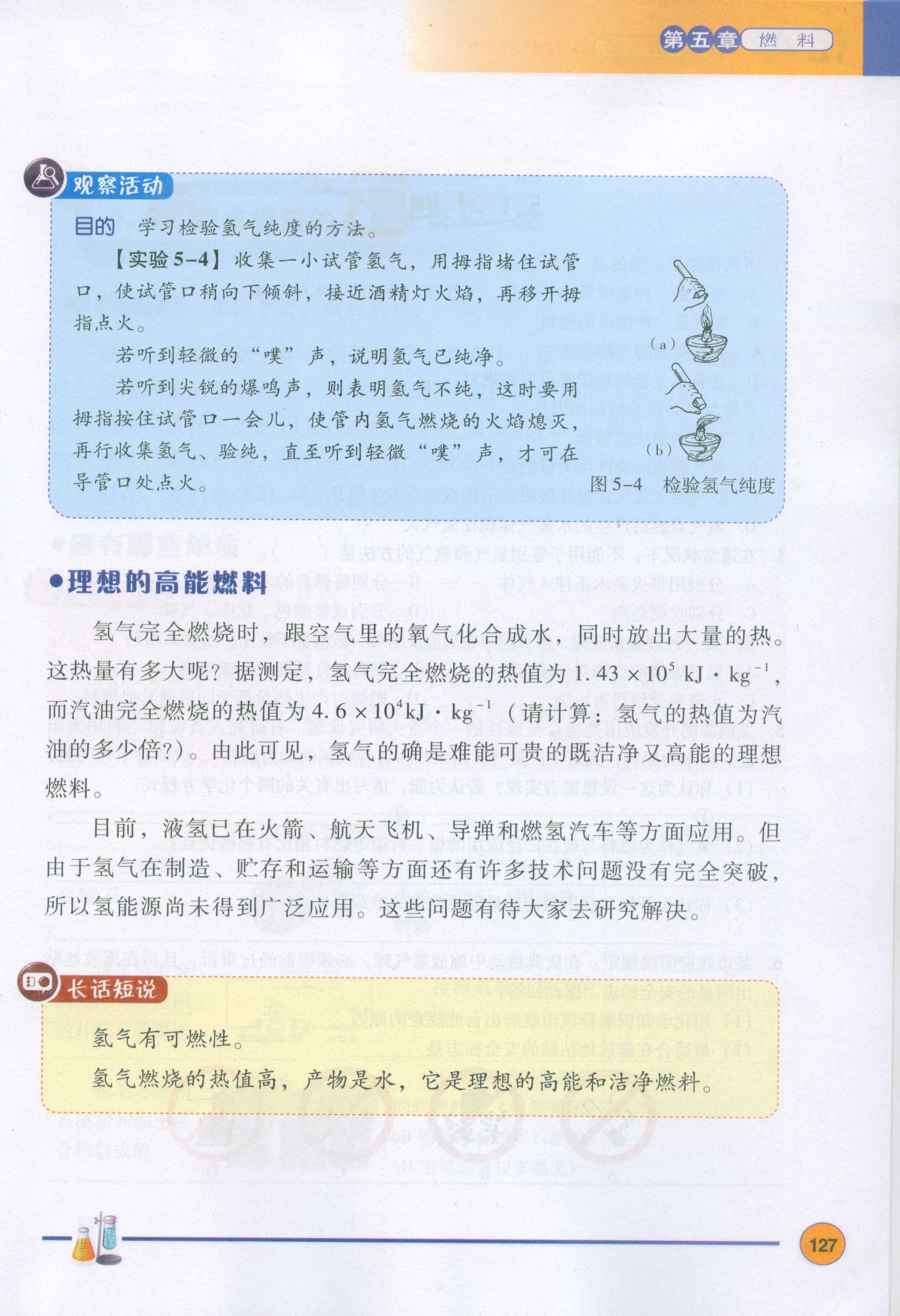 2012年新粤教版初中化学九年级上册电子课本:《5.1洁净的燃料--氢气》