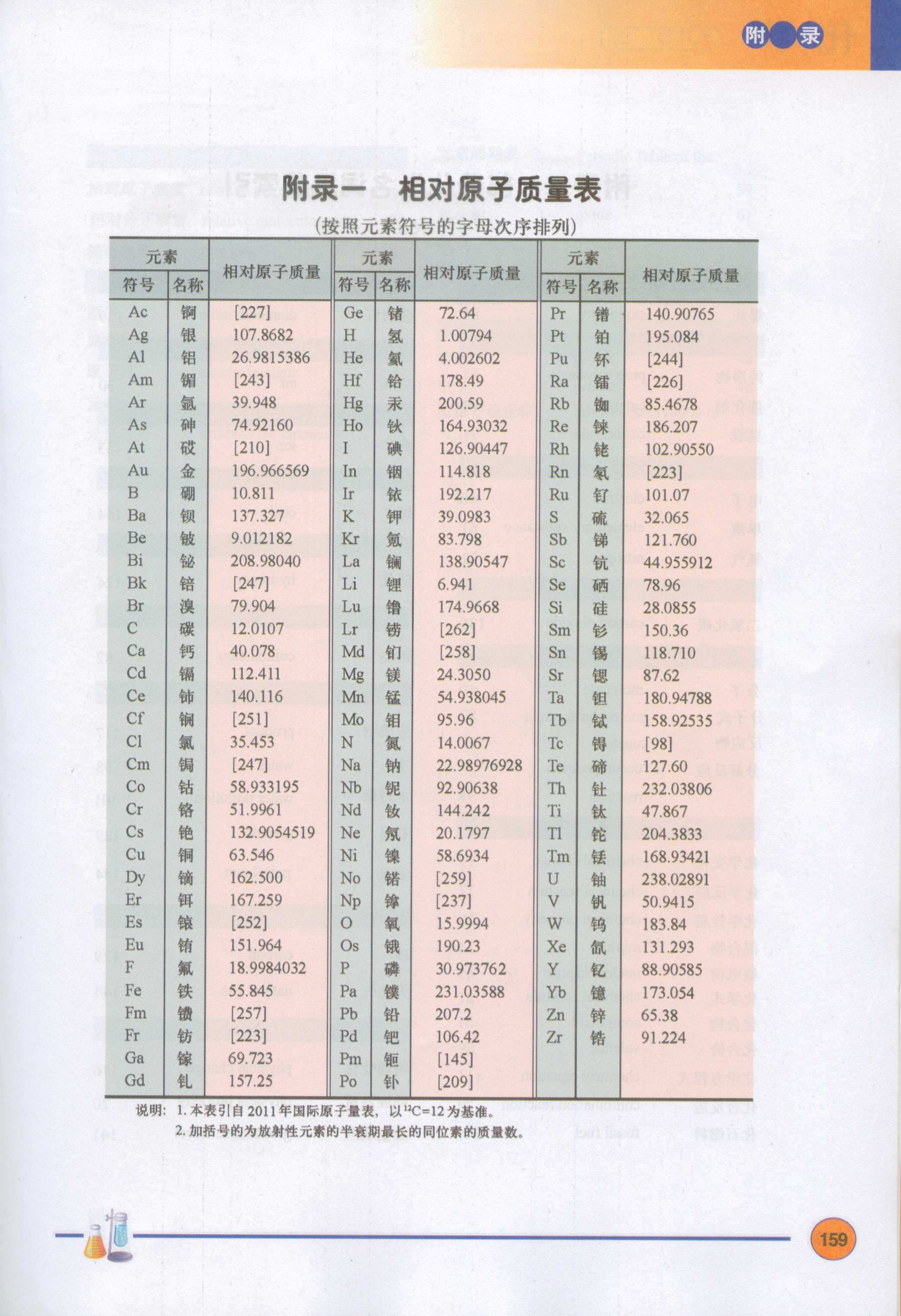 2012年新粤教版初中化学九年级上册电子课本:《附录一相对原子质量表》