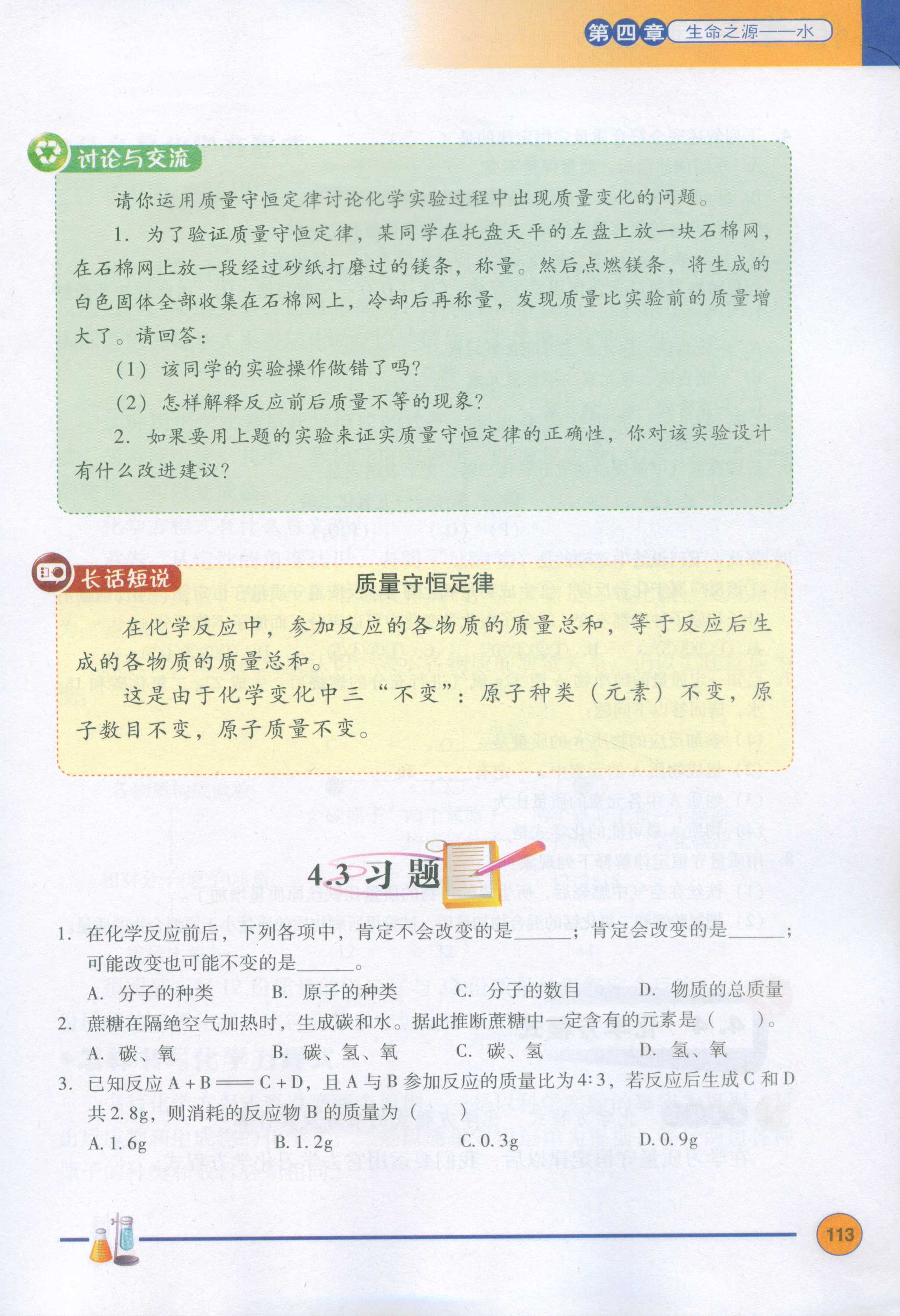 2012年新粤教版初中化学九年级上册电子课本:《4.3质量守恒定律》