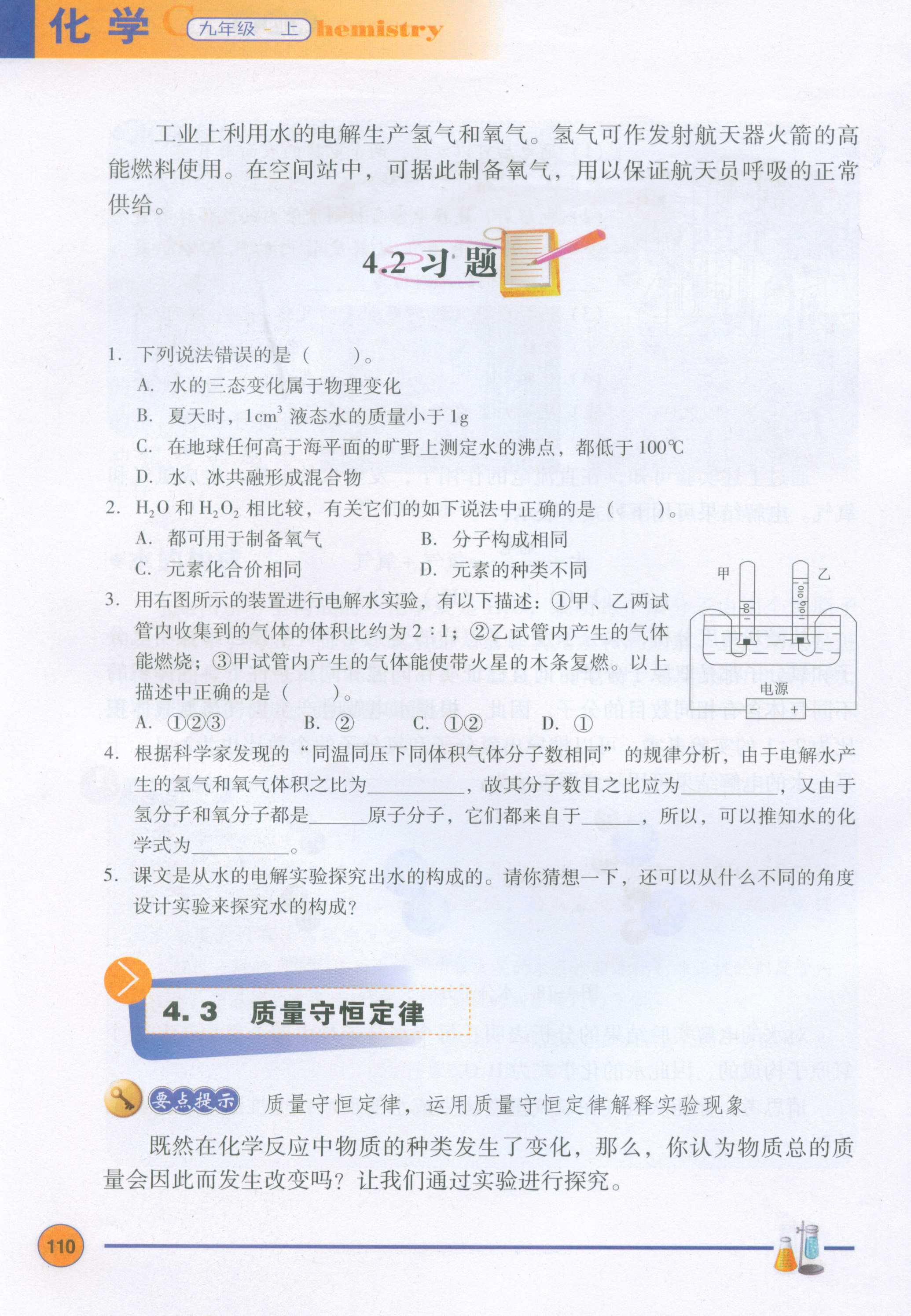 2012年新粤教版初中化学九年级上册电子课本:《4.2水的组成》