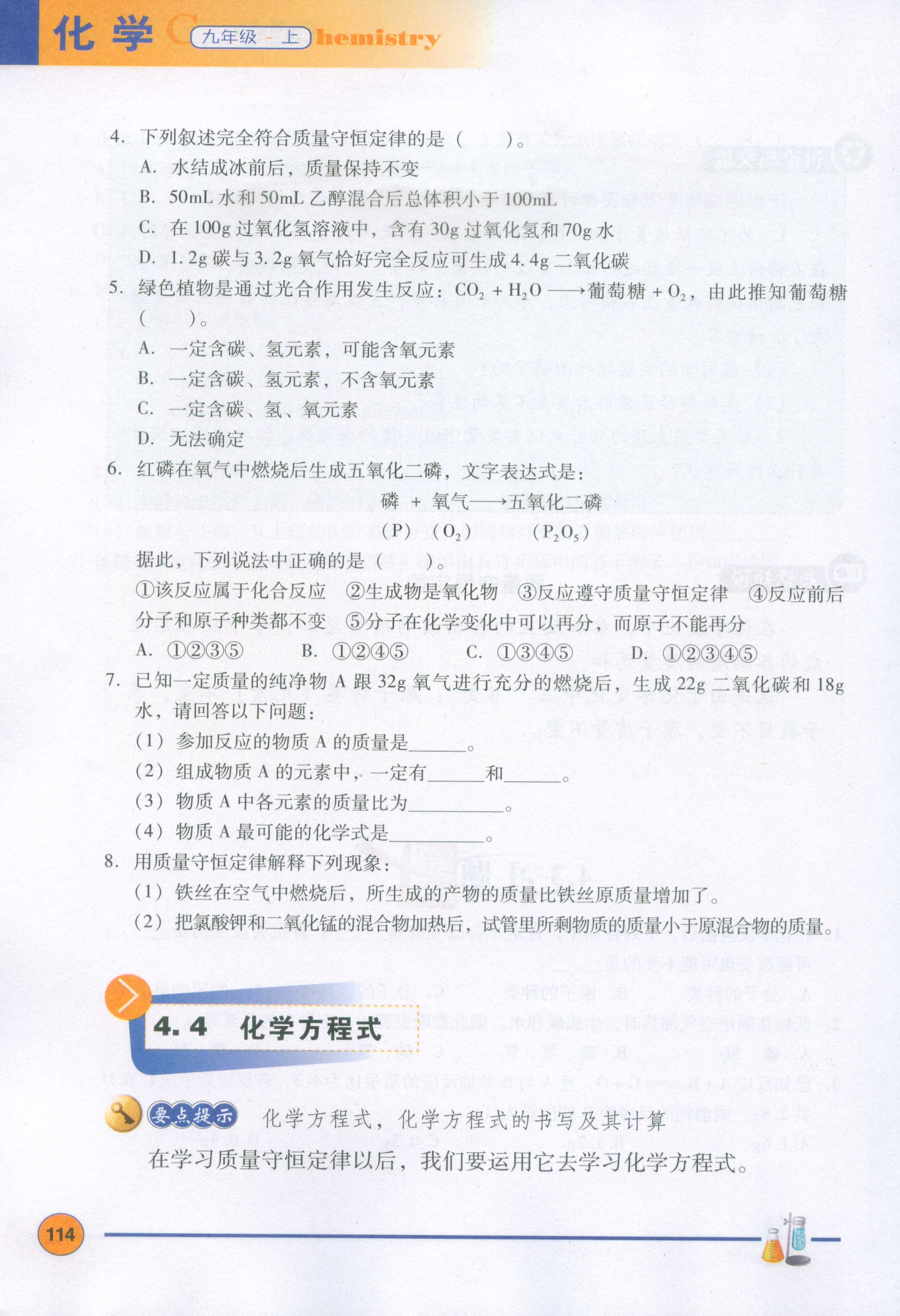 2012年新粤教版初中化学九年级上册电子课本:《4.4化学方程式》