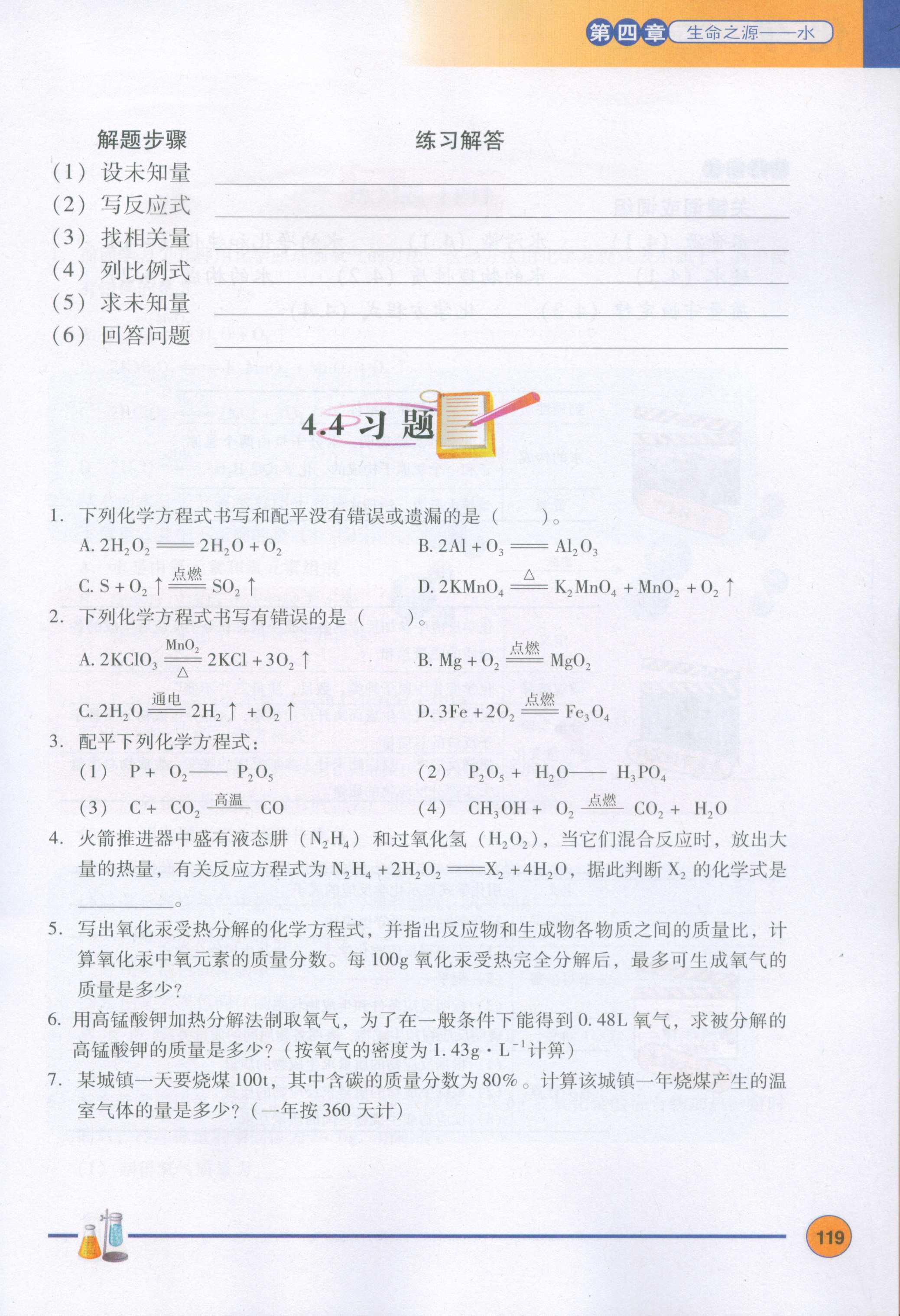2012年新粤教版初中化学九年级上册电子课本:《4.4化学方程式》